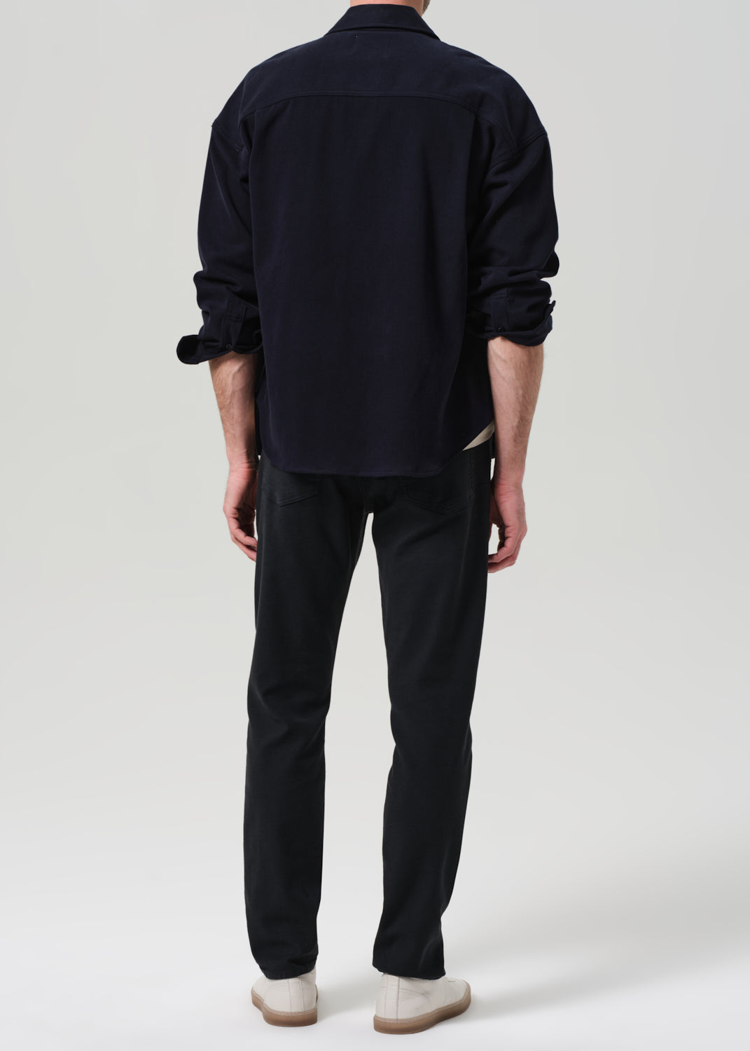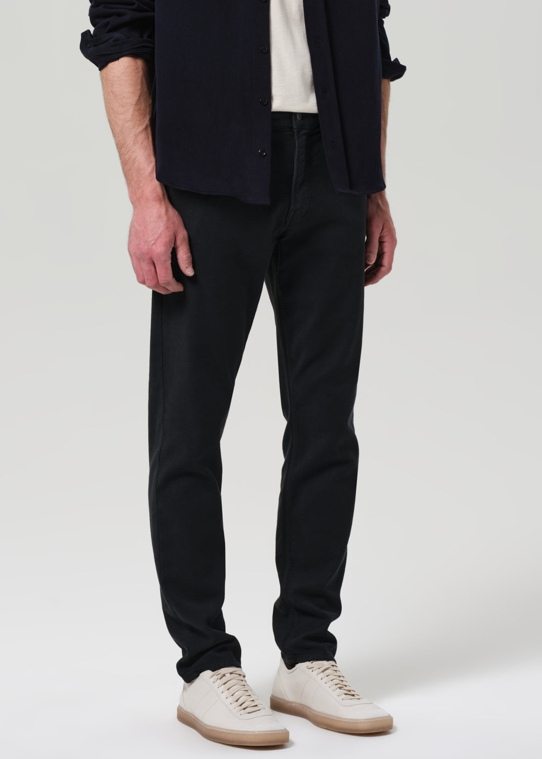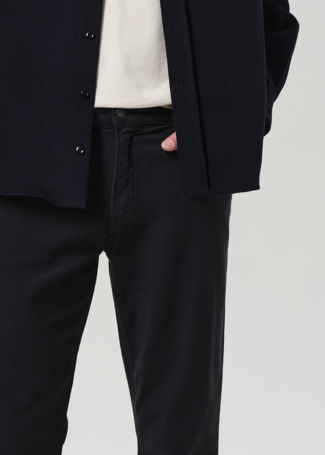 The Adler is our slim straight fit—slightly higher rise, room through the thigh, and a subtle taper from knee to ankle. Made from midweight French terry with comfortable stretch, this pair is finished in a deep charcoal grey for a clean, understated look.