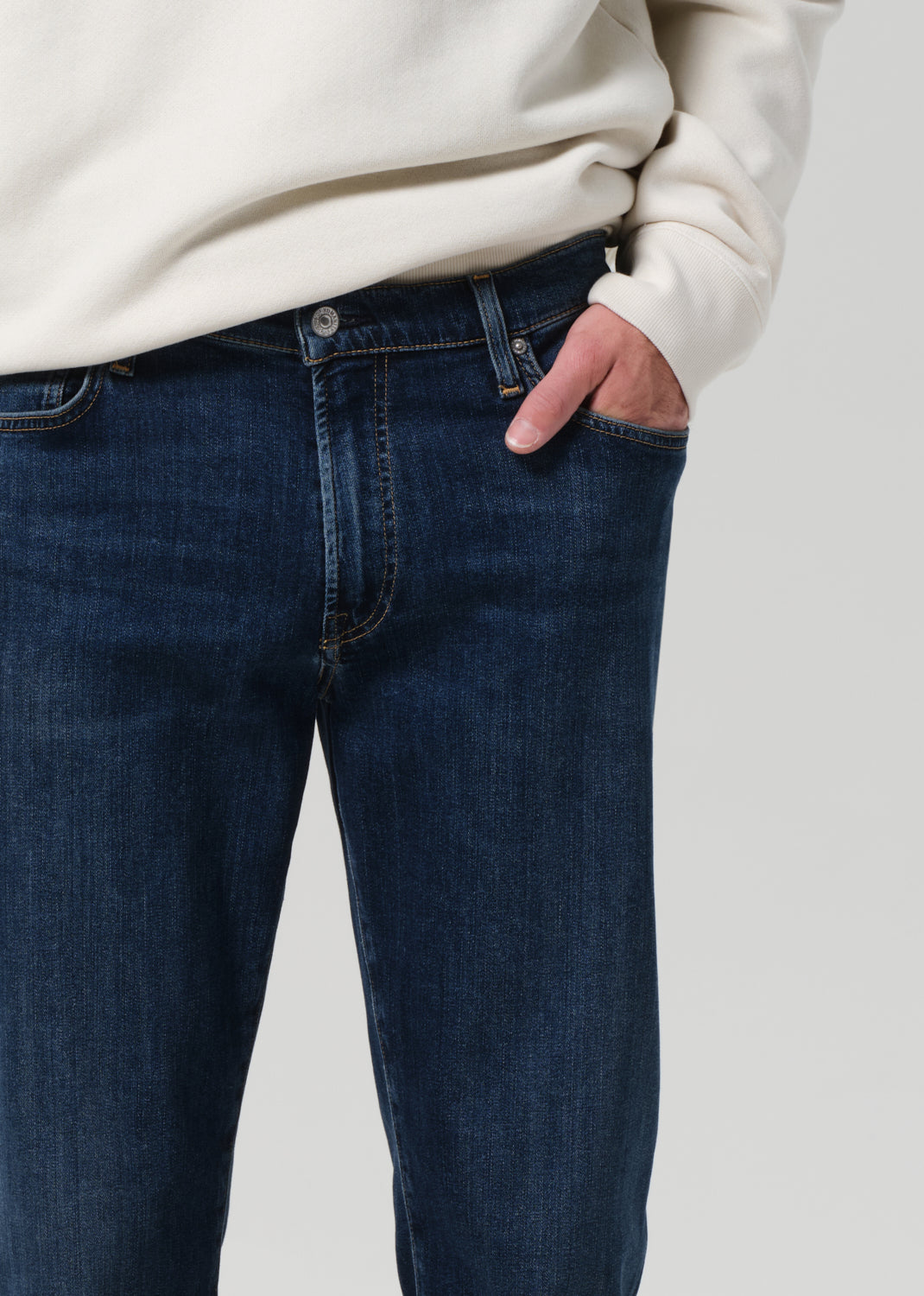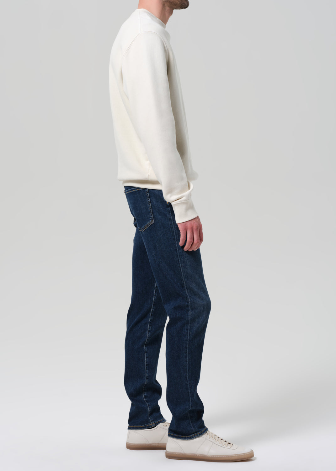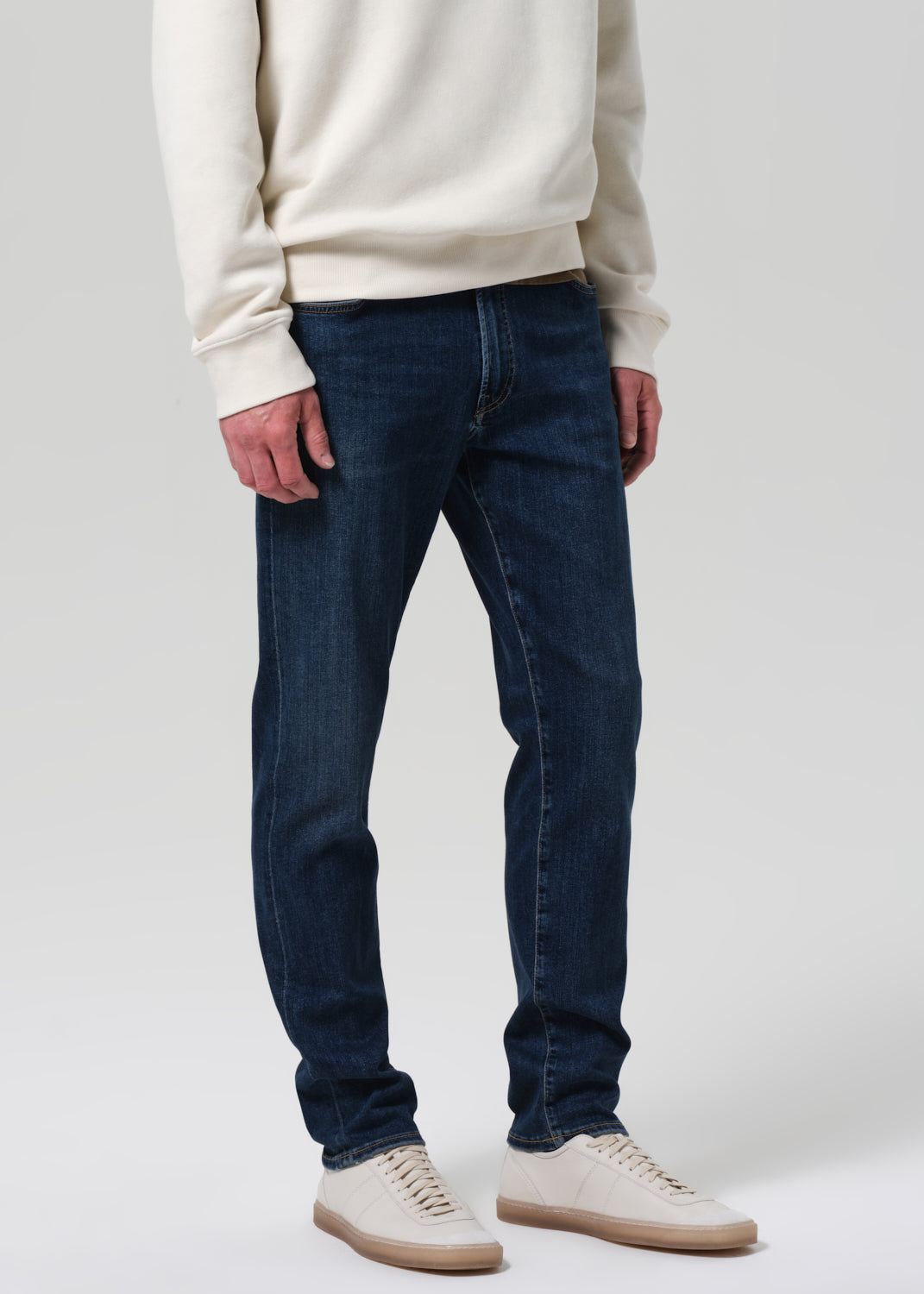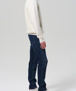 The Adler is our slim straight fit—cut with a slightly higher rise, room through the thigh, and a subtle taper from knee to ankle. This pair is made from lightweight stretch denim crafted with regenerative cotton, offering soft structure and ease of movement. Finished in a dark indigo wash with subtle fading and whiskering for a lived-in look.