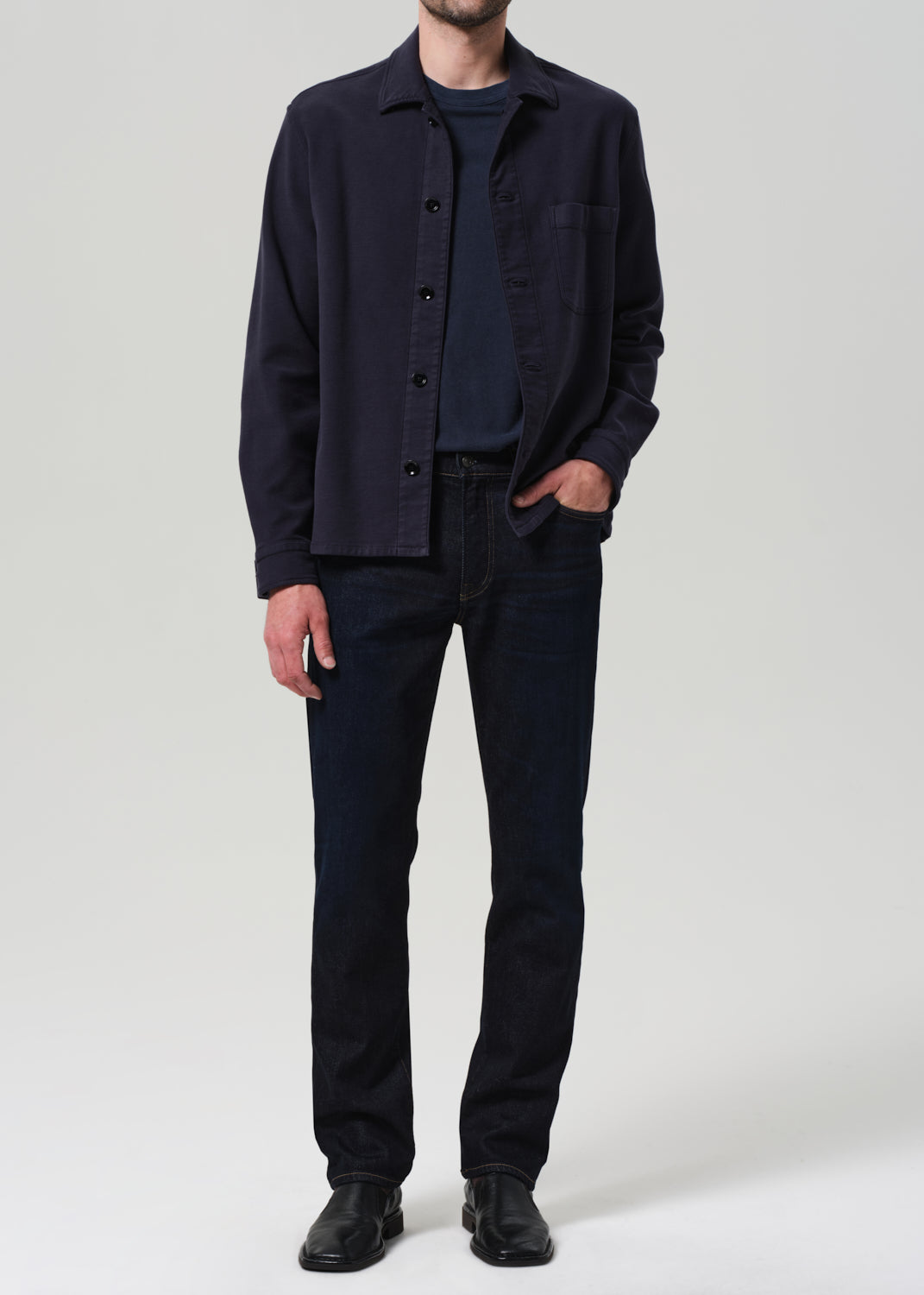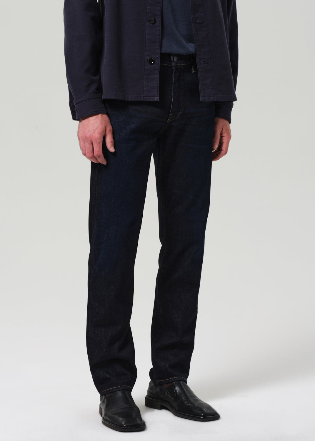 The Elijah is our most relaxed fit—cut straight through the hip and leg for a laid-back, easy feel. This pair is made from our signature Perform denim, blended with cashmere for exceptional softness and comfort. Finished in a deep, clean indigo wash for a polished, everyday look.