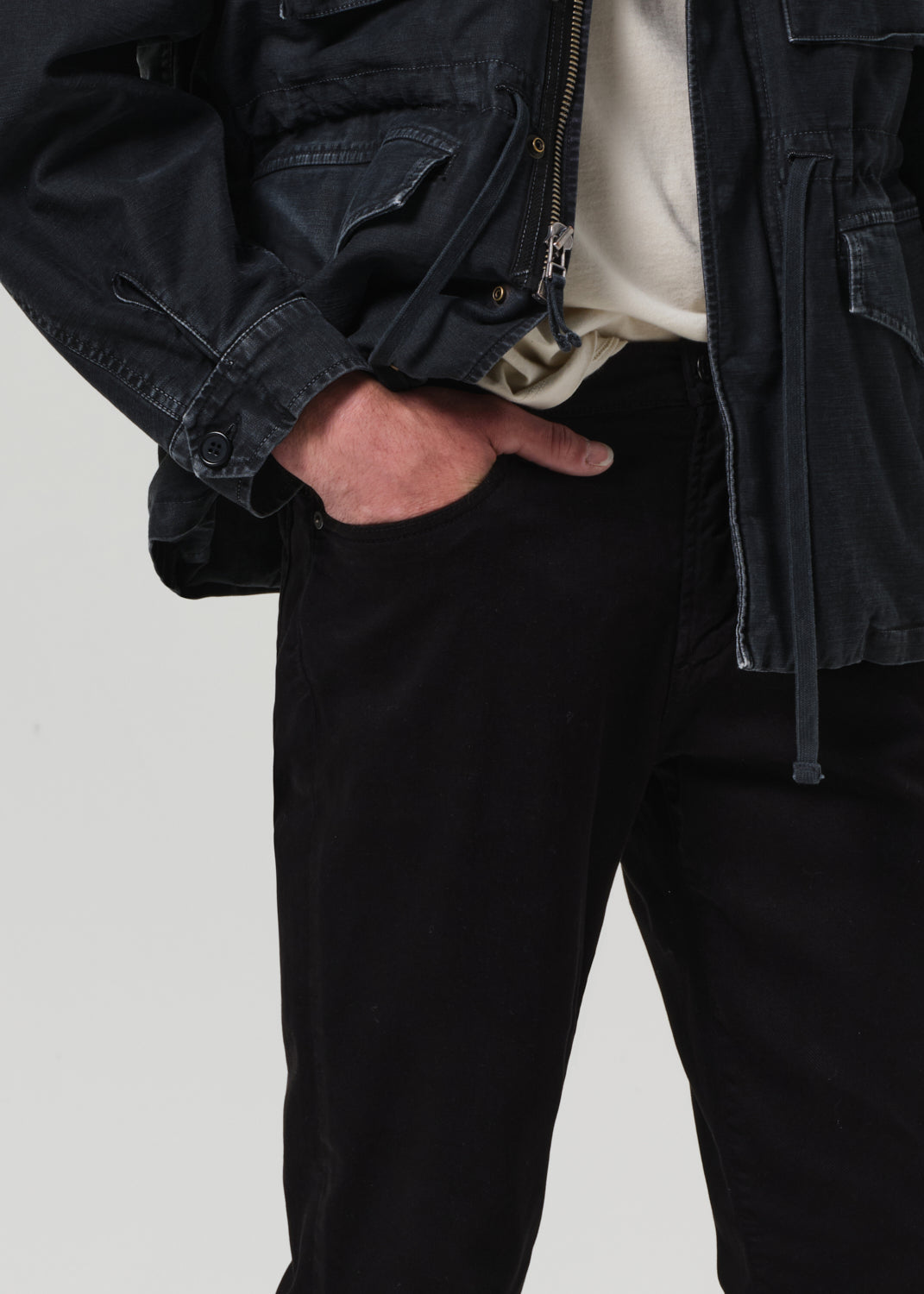 The Elijah is our most relaxed fit—cut straight through the hip and leg for a laid-back silhouette. This pair is crafted from our signature cashmere-touch twill, offering a luxurious, ultra-soft feel with the structure of traditional tailoring. Finished in a clean, true black for a refined everyday staple.