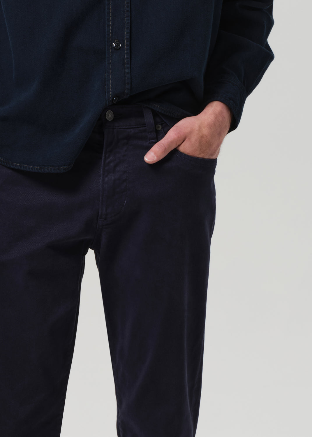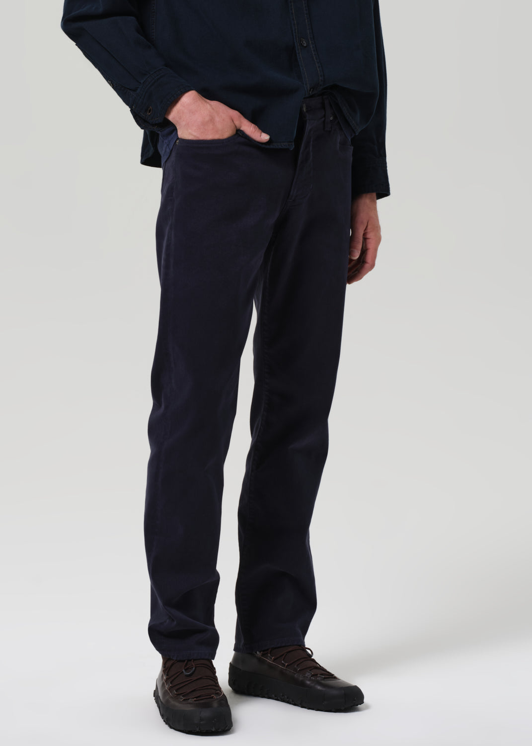 The Elijah is our most relaxed fit—cut straight through the hip and leg for a laid-back, easy silhouette. Crafted from our signature cashmere-touch twill, this pair delivers an ultra-soft feel with a clean, tailored finish. Done in a deep navy, it’s an elevated staple built for everyday wear.