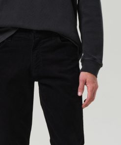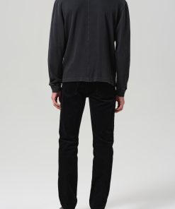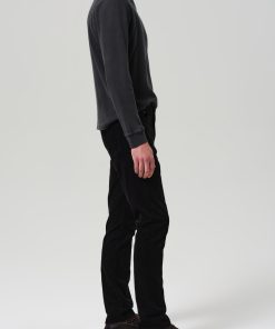 The Elijah is our most relaxed fit—cut straight through the hip and leg for ease and comfort. This version is crafted from ultra-soft stretch corduroy with a subtly textured finish, offering a fresh take on a seasonal staple. Finished in true black for a clean, refined look.