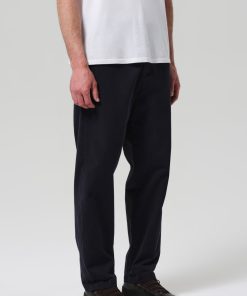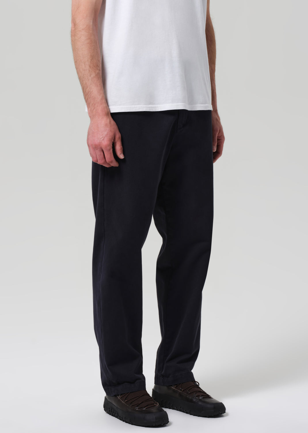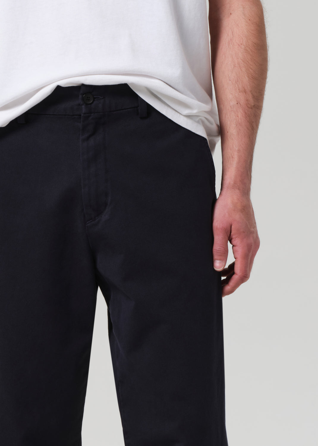 The Flat Front Chino is a tailored essential, cut from midweight moleskin with a soft, brushed hand. Designed with a clean, tapered leg and finished in classic navy, it offers a refined alternative to everyday denim.