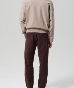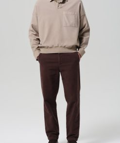 A refined wardrobe staple, the Flat Front Chino is cut from midweight moleskin with a soft, brushed finish. Designed with a clean front and tapered leg, this pair is finished in a rich dark brown for a grounded, versatile look.