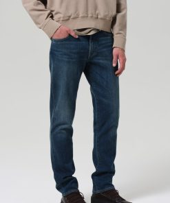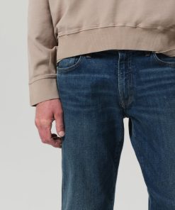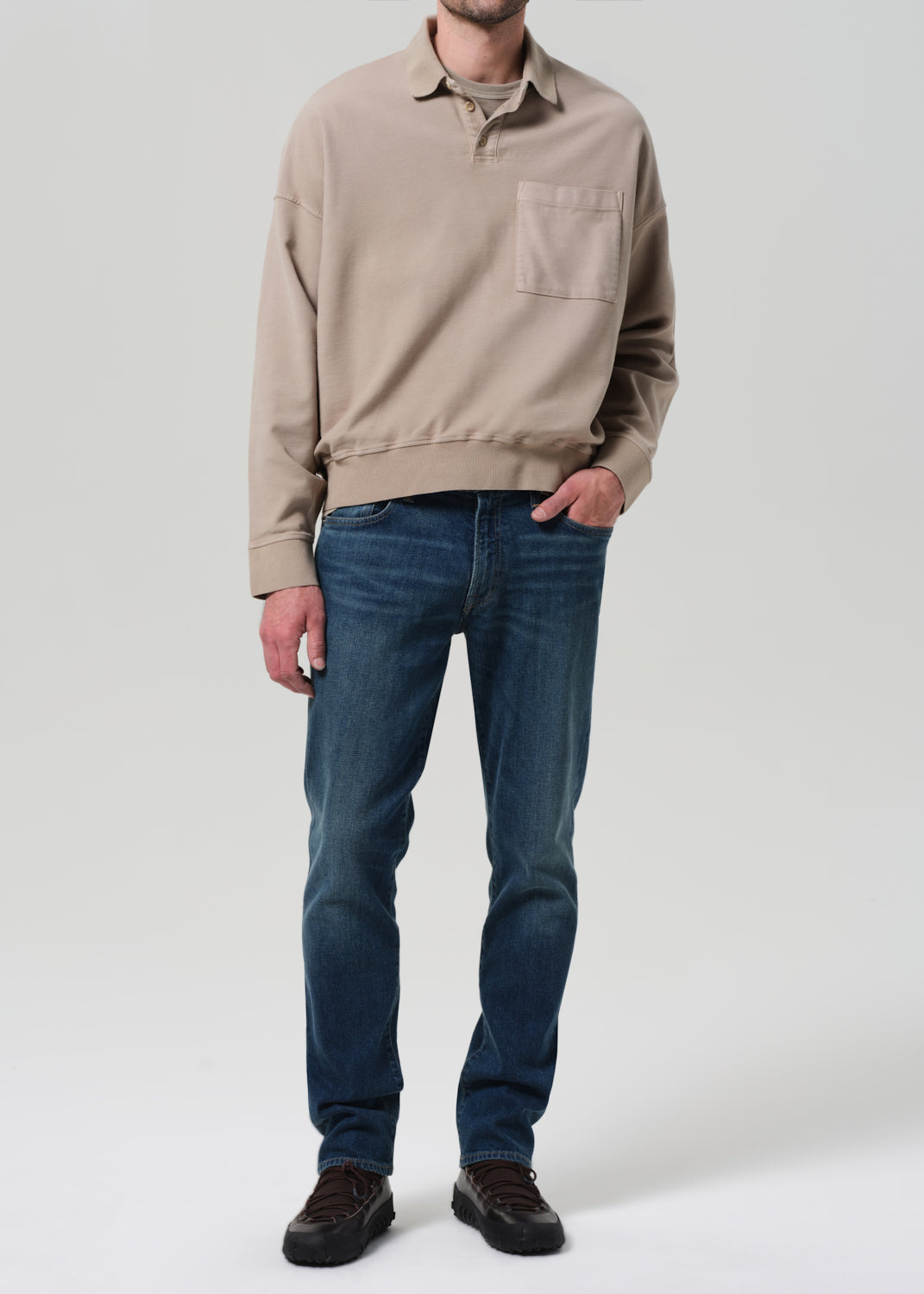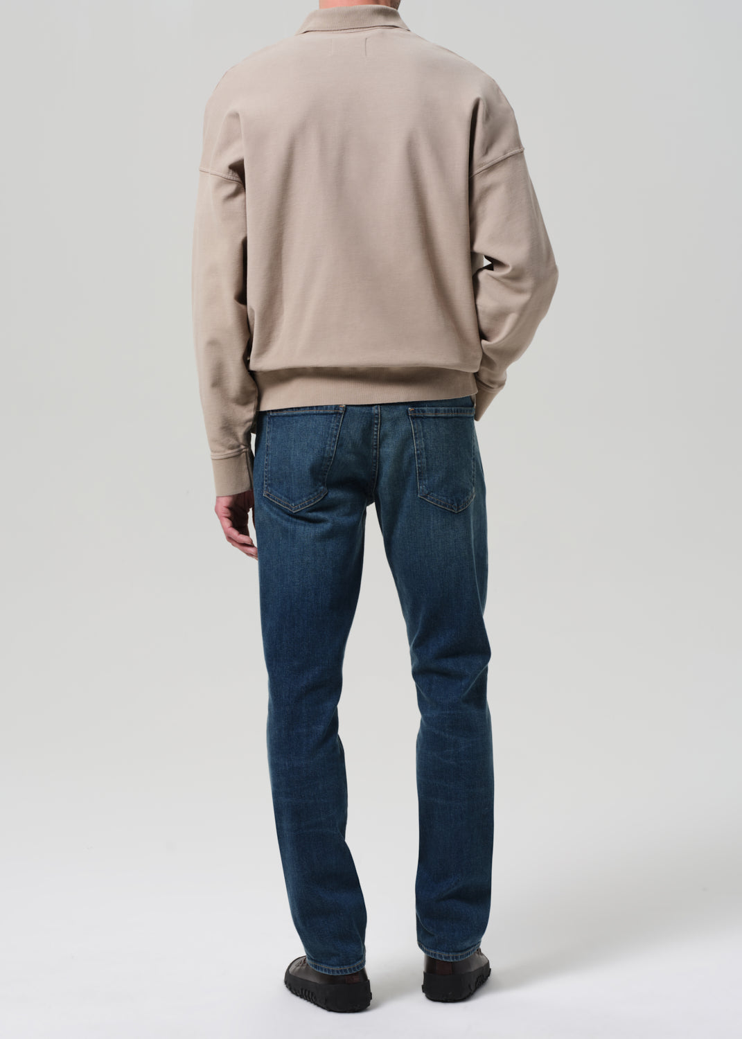 The Gage is our tapered classic, designed with a fuller fit through the hip and thigh that narrows below the knee for a clean, streamlined finish. Crafted from comfort stretch archive denim with a soft hand, it delivers all-day wearability with refined structure. Kinetic is a medium-to-dark indigo wash with fading and whiskering for a lived-in, versatile look.