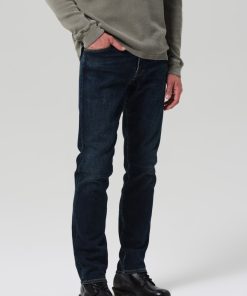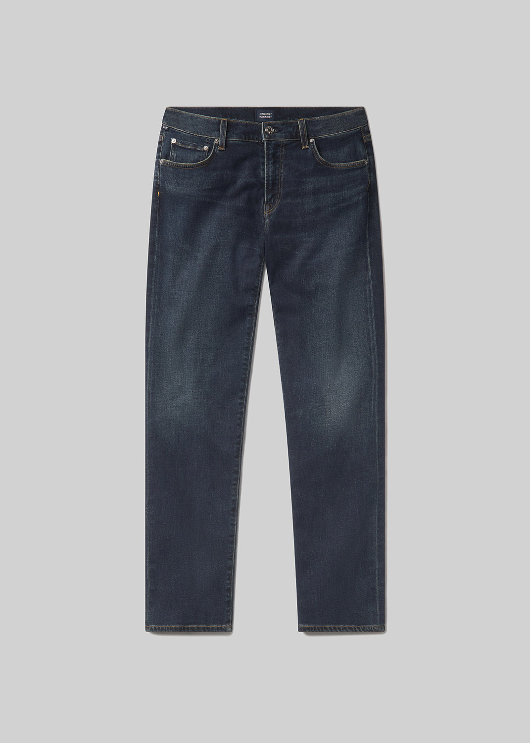 The Gage is a classic straight-leg fit with a mid rise and a clean, easy silhouette. Crafted from our signature Perform denim blended with cashmere, this pair offers a remarkably soft hand and flexible feel. Finished in a dark-to-medium indigo wash with subtle fading and whiskering for a lived-in yet polished look.