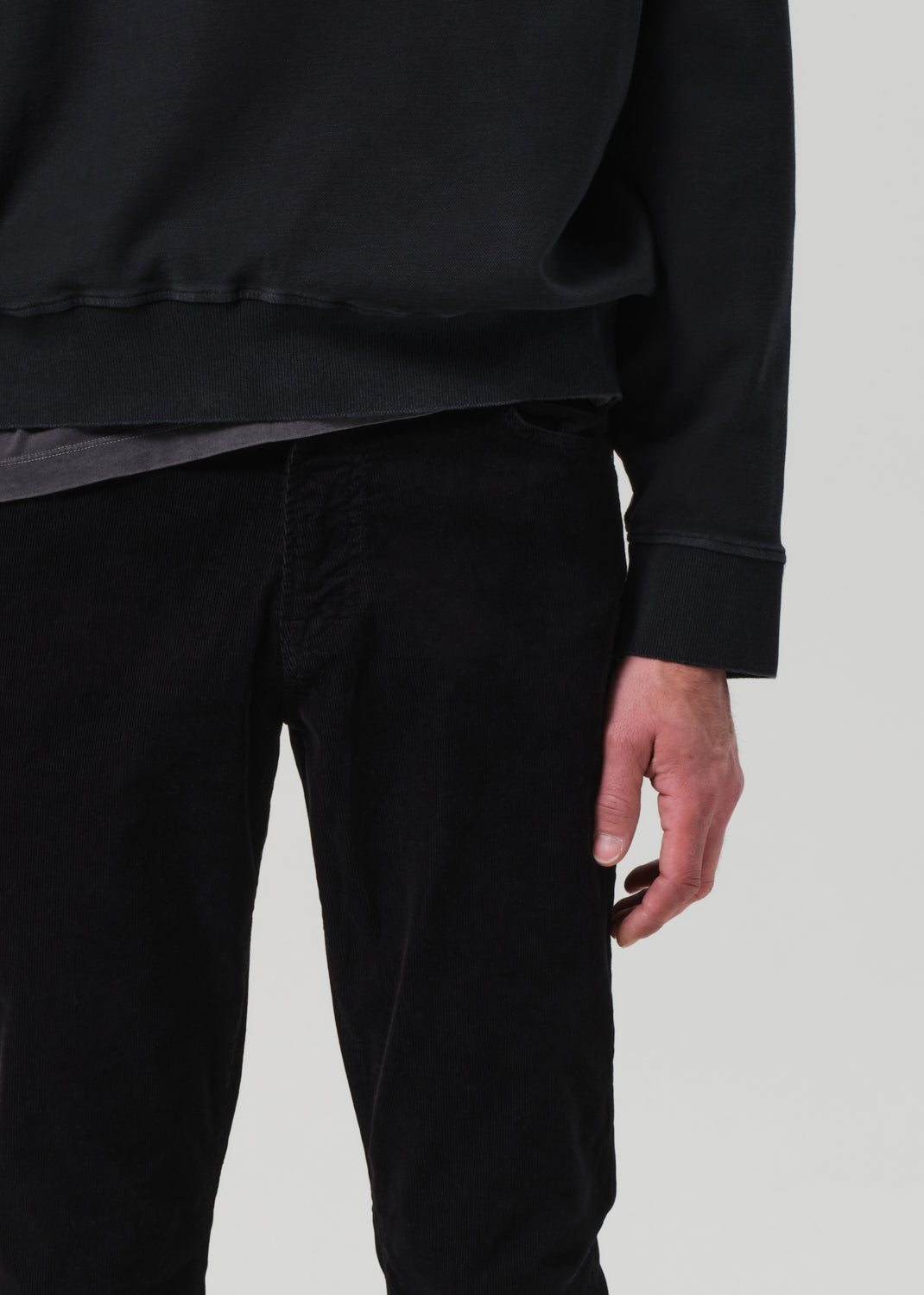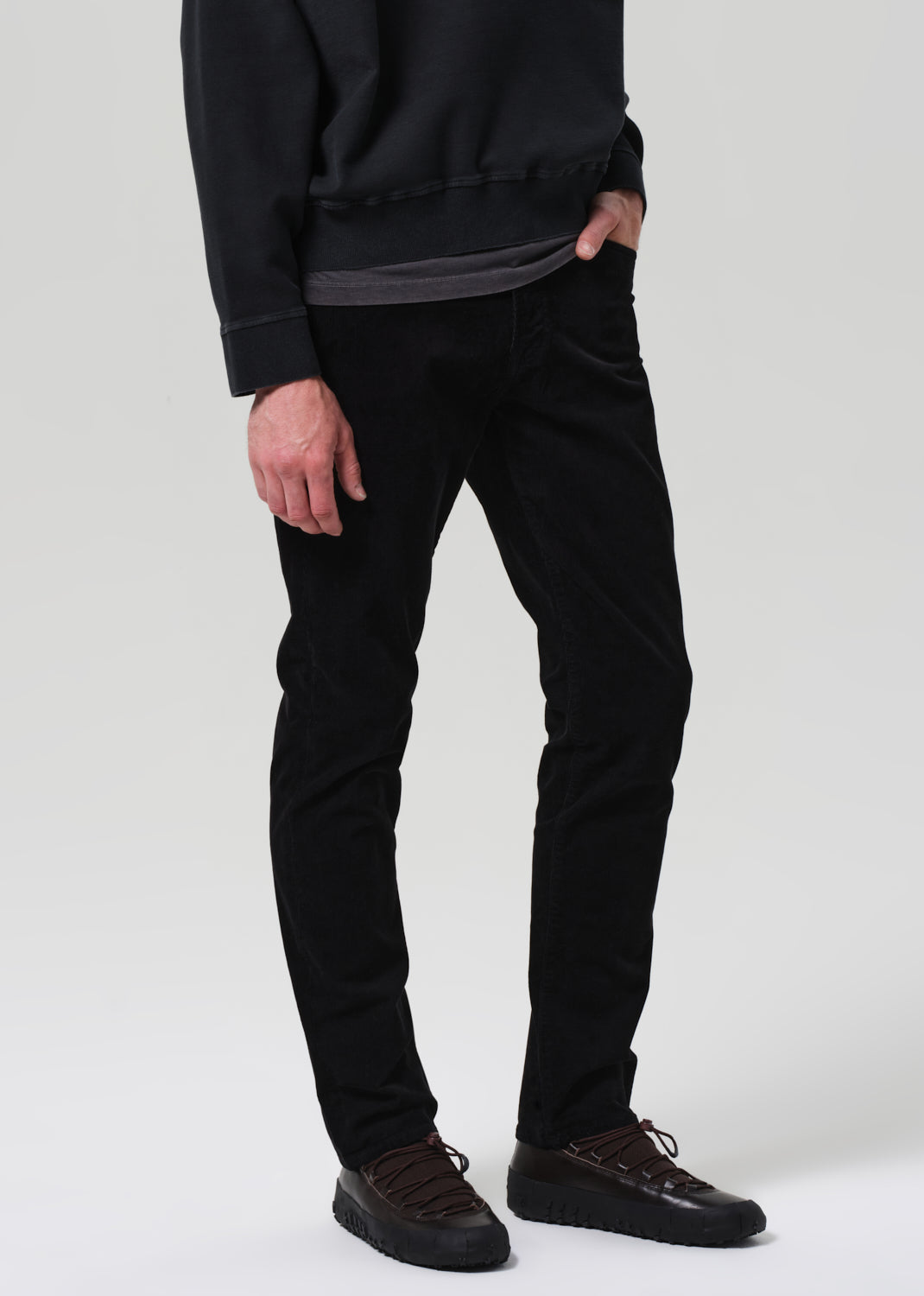The Gage Classic Straight is a versatile staple, updated in soft, textured corduroy with a touch of stretch for comfort. Designed with a fuller fit through the hip and thigh and a gentle taper from the knee down, it offers a clean, balanced silhouette. Finished in true black for timeless wear.