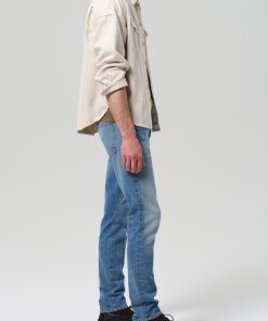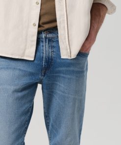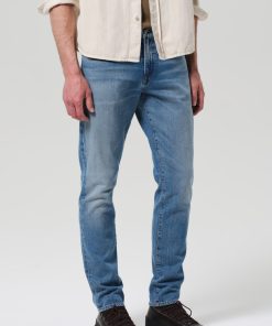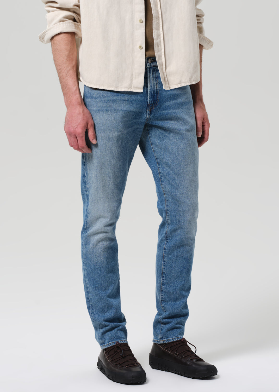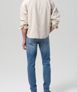 The ‘London’ is a modern slim taper, designed to fit clean through the thigh and taper below the knee for a sharp, balanced silhouette. Cut from our signature archive stretch denim with a soft, broken-in feel, Bauhaus is a light-to-medium indigo wash with subtle fading and marbling for a worn-in finish.