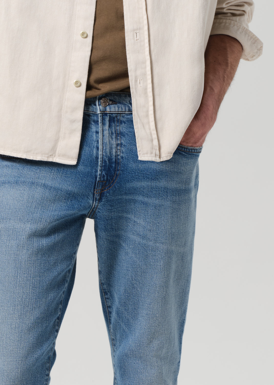 Looks Like: Light to medium indigo denim