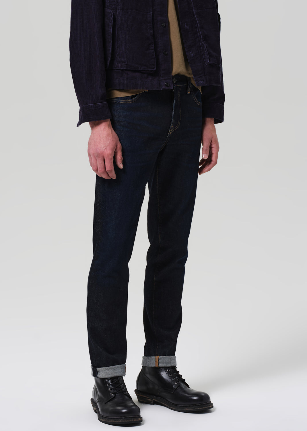 The ‘London’ is a modern slim taper, cut from cashmere-infused Perform denim with a soft, flexible hand. Clean through the thigh and tapered through the leg, it offers a sharp, streamlined silhouette. The deep indigo wash is clean and versatile—ideal for elevated everyday wear.