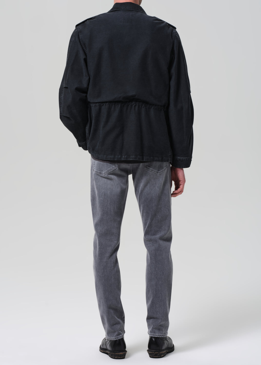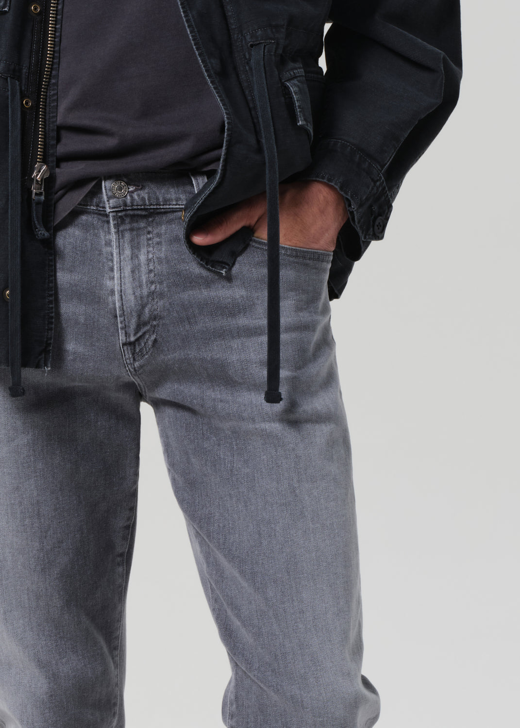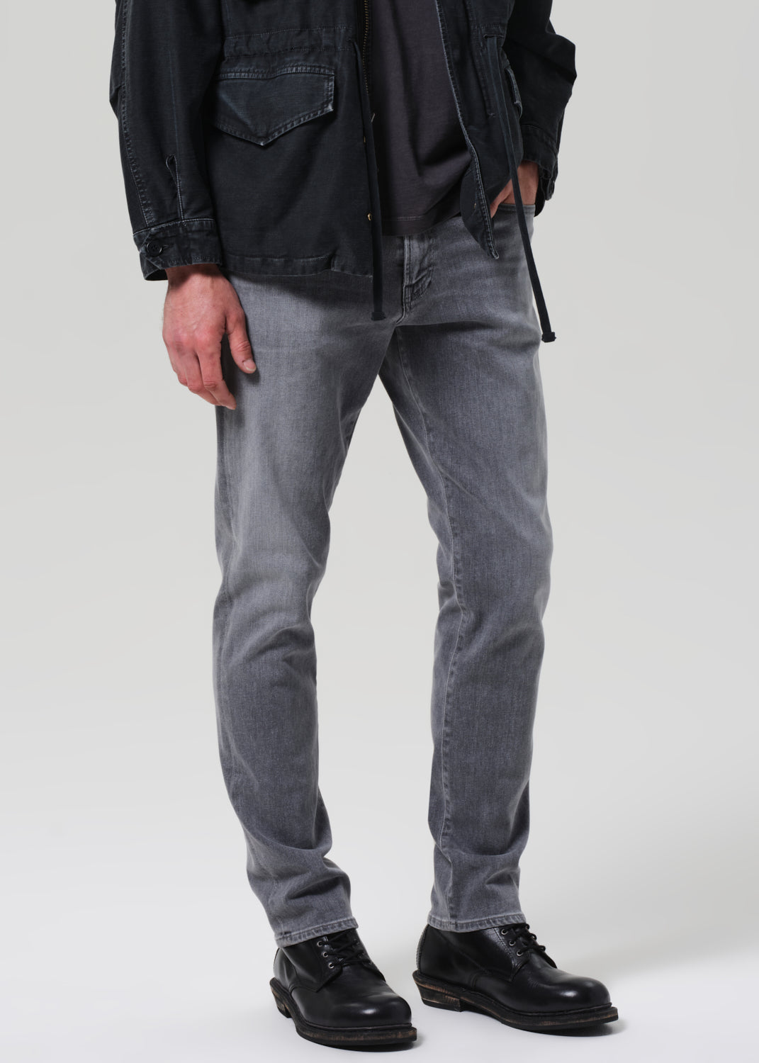 The ‘London’ is a modern slim taper, cut from lightweight stretch denim for all-day ease. Designed to fit clean through the thigh and taper below the knee, it offers a streamlined silhouette with just the right amount of give. Sycamore is a versatile grey wash with subtle fading and whiskering—an effortless upgrade to everyday denim.