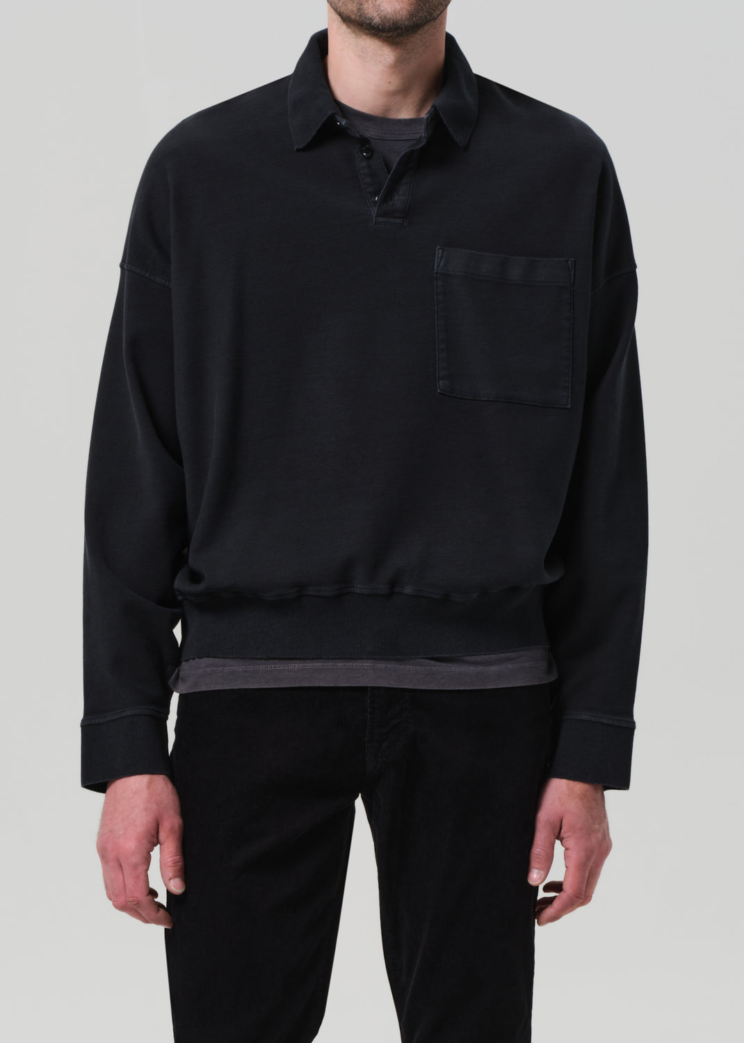The ‘Rugby Polo’ is an elevated take on a casual staple, cut from soft French terry with added stretch for all-day comfort. Designed with a front pocket and subtle collar, the long sleeve silhouette delivers ease and polish in equal measure. Ideal on its own or layered under outerwear.