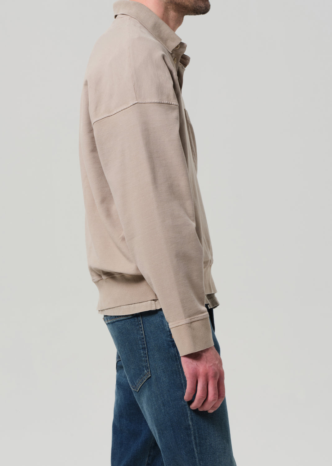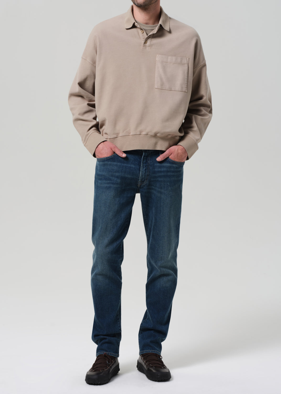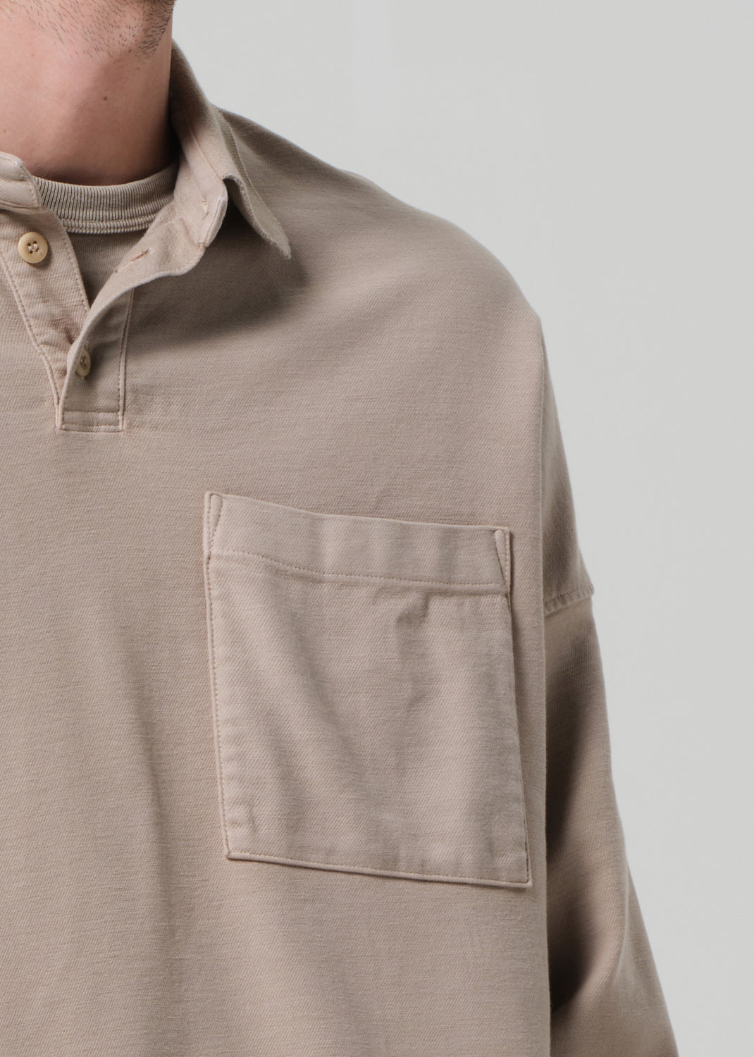 The ‘Rugby Polo’ is an elevated take on a casual staple, cut from soft French terry with added stretch for all-day comfort. Designed with a front pocket and subtle collar, the long sleeve silhouette delivers ease and polish in equal measure. Ideal on its own or layered under outerwear.