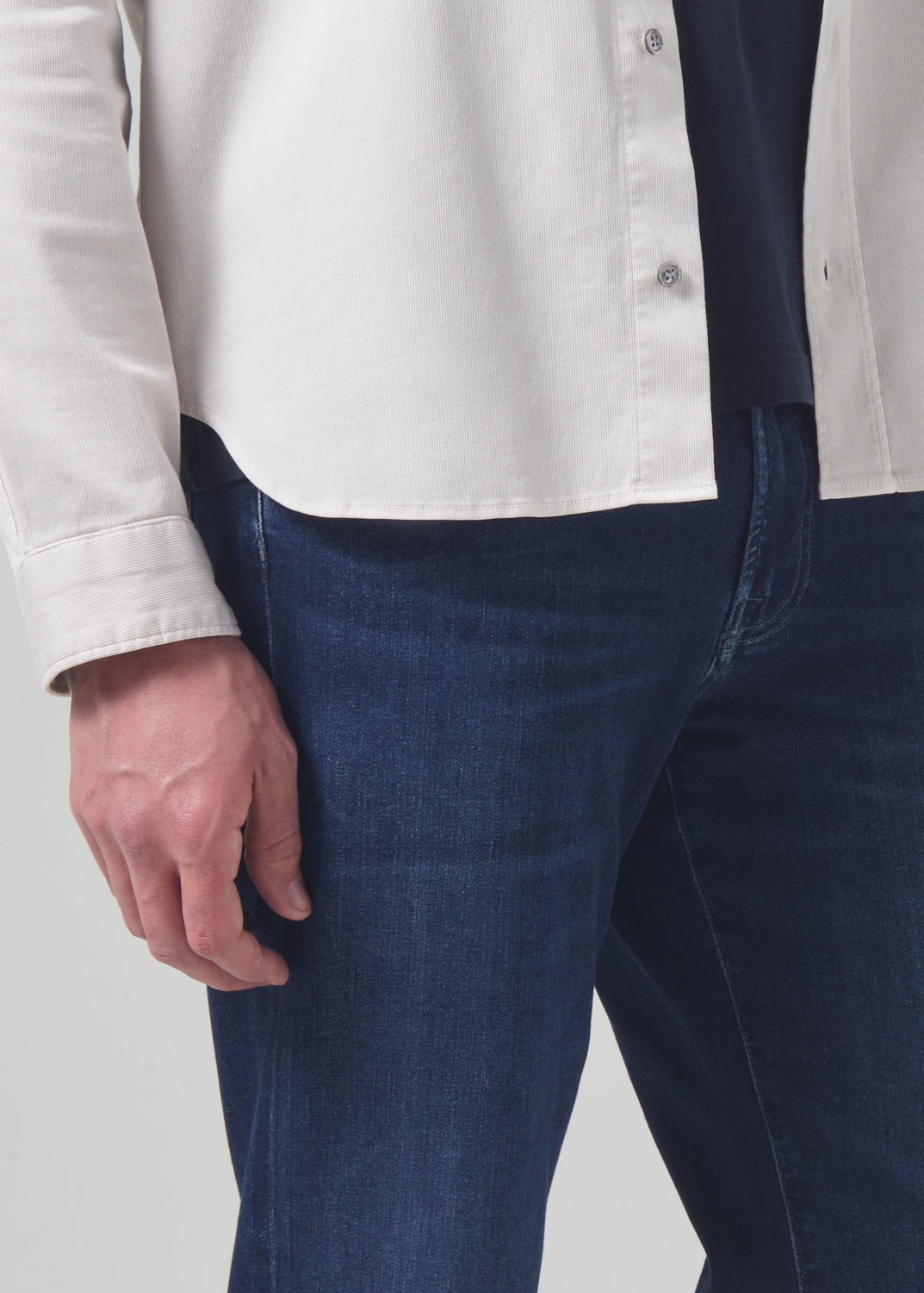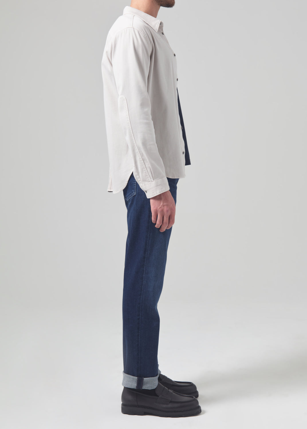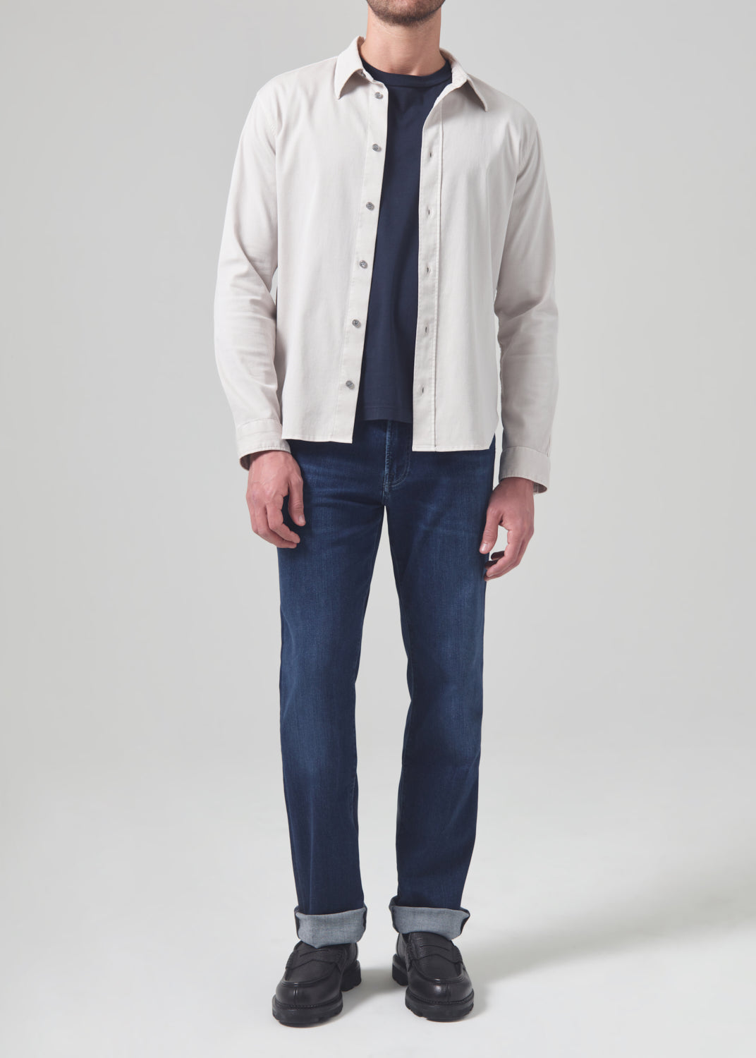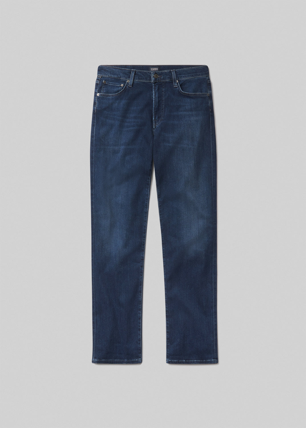 A classic straight. The Sid has mid-rise with a fuller straight leg from top to ankle. The wide ankle is easily pulled over boots.