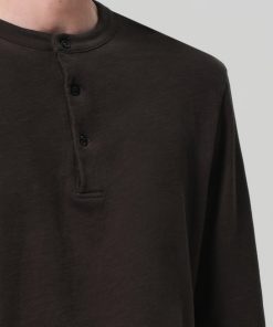 The ‘Three Button Henley’ is a laid-back staple cut from lightweight sueded jersey cotton for an exceptionally soft feel. Designed with a clean neckline and tonal buttons, the long sleeve silhouette offers effortless layering and year-round wear.