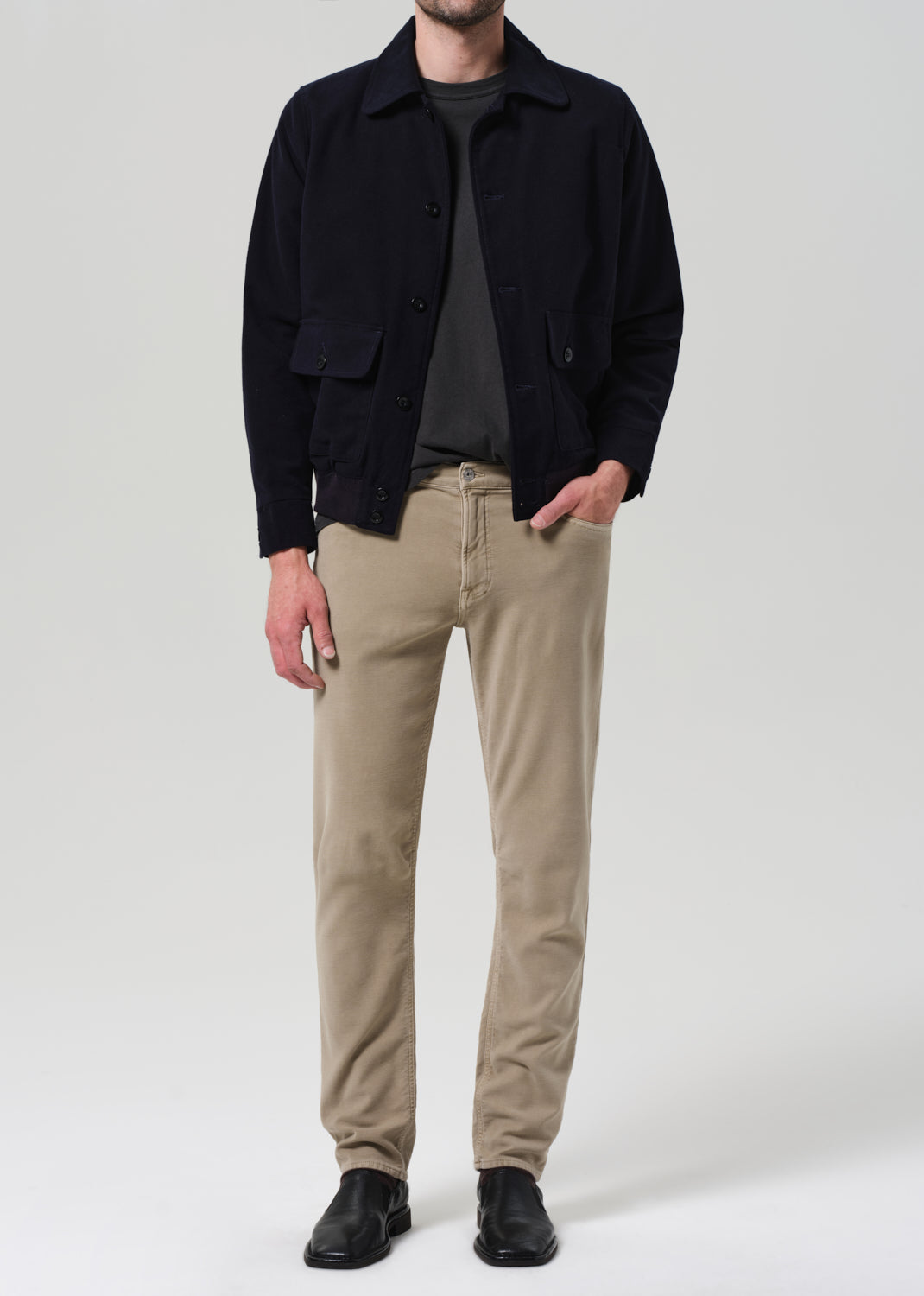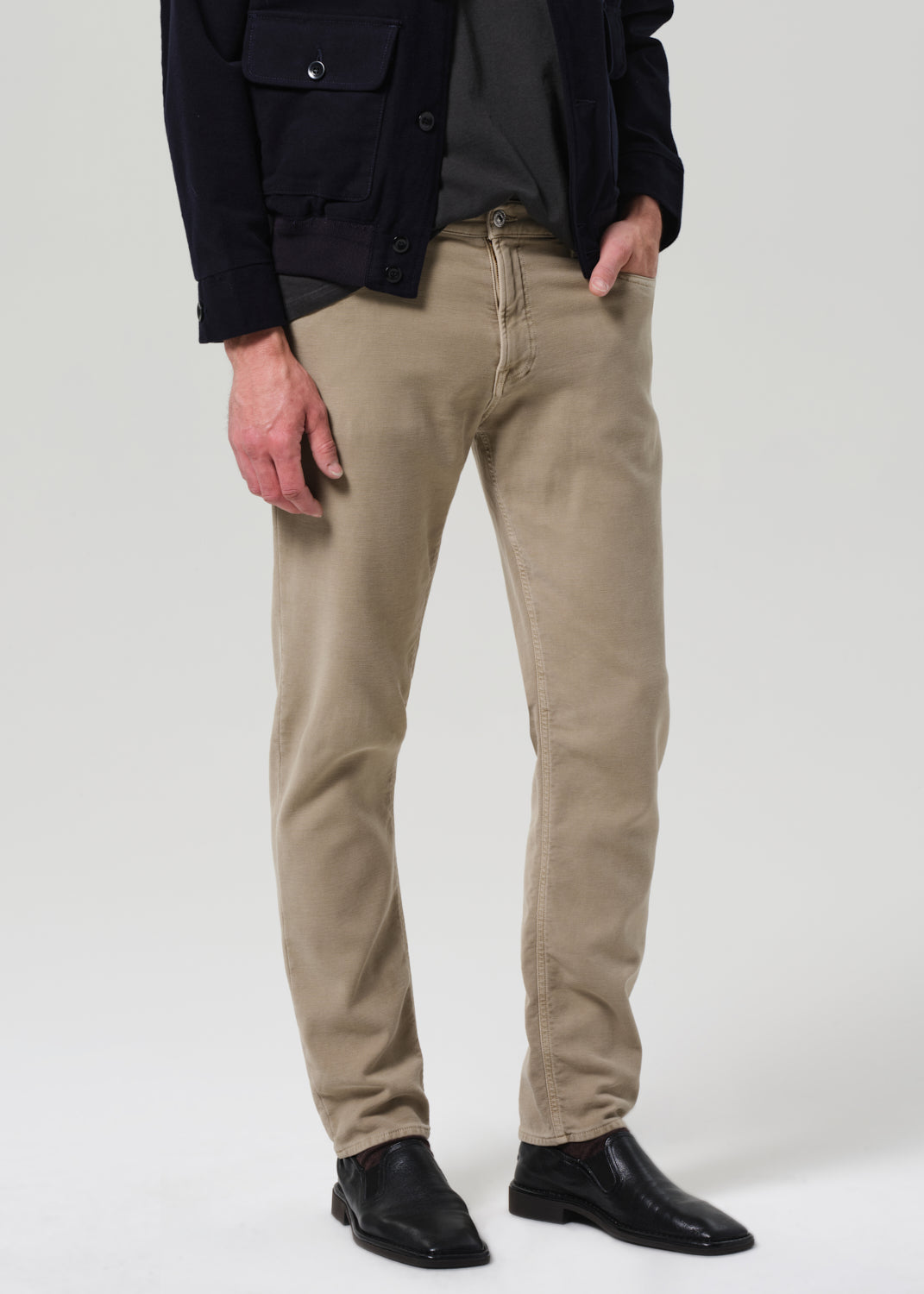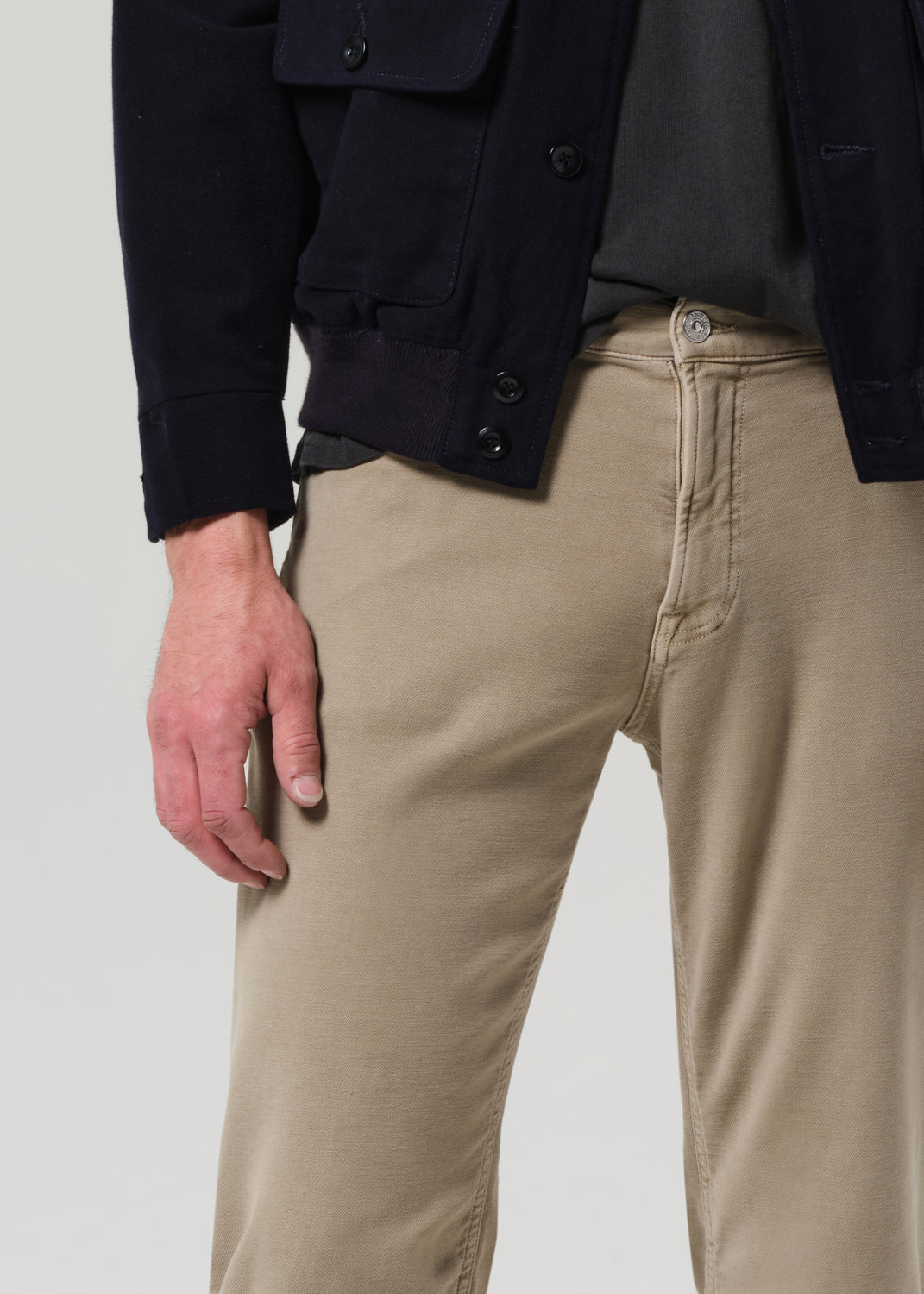 The Adler is our slim straight fit—cut with a slightly higher rise, room through the thigh, and a subtle taper from knee to ankle. Made from midweight French terry with added stretch, this pair is finished in a warm stone beige for a versatile, worn-in look that feels broken-in from day one.
