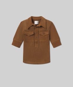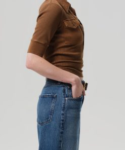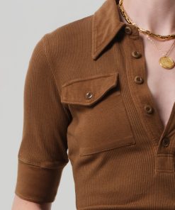 The ‘Amina’ polo is an elevated essential, crafted from ultra-soft, supportive rib. Featuring elbow sleeves and front patch pockets, it offers a clean silhouette with subtle texture. The Manuka shade—a rich bronze with medium to dark warmth—adds a grounded, refined tone. Pairs effortlessly with tonal denim or tailored trousers.