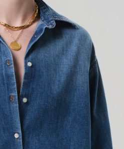 The Ana shirt blends tailored ease with denim attitude, cut in lightweight Japanese cotton denim with a breathable, natural drape. The cropped silhouette and pointed collar bring modern structure, while the Somerset wash—a softly faded medium indigo—adds relaxed character. Style with crisp white or worn-in denim for effortless contrast.