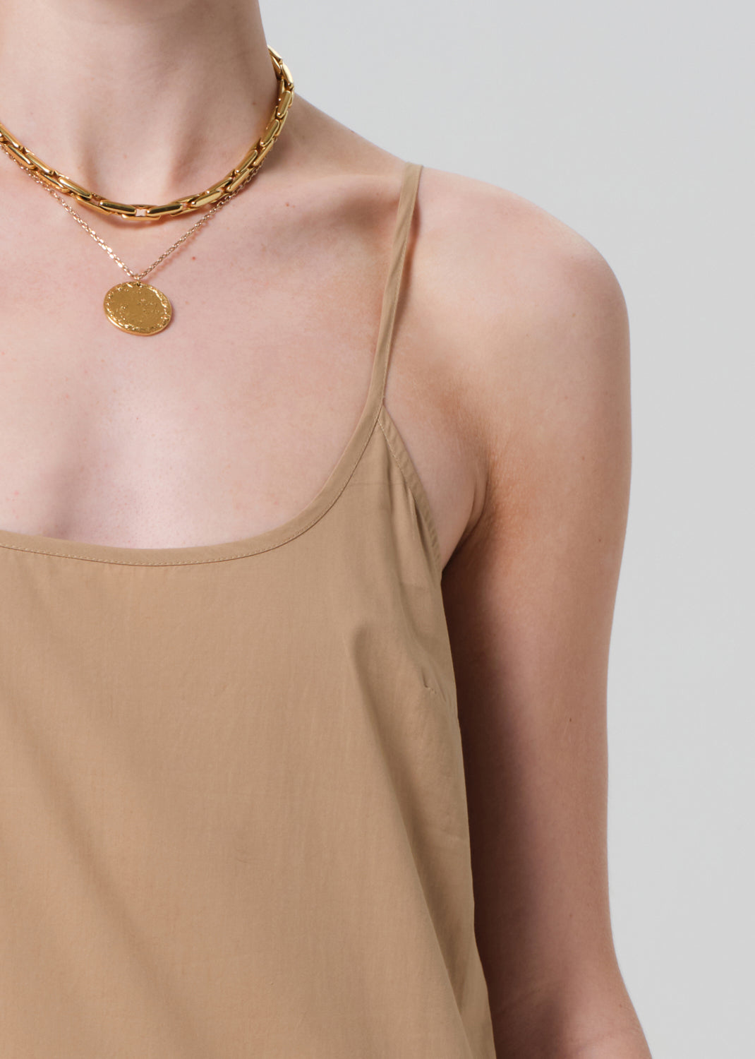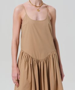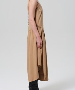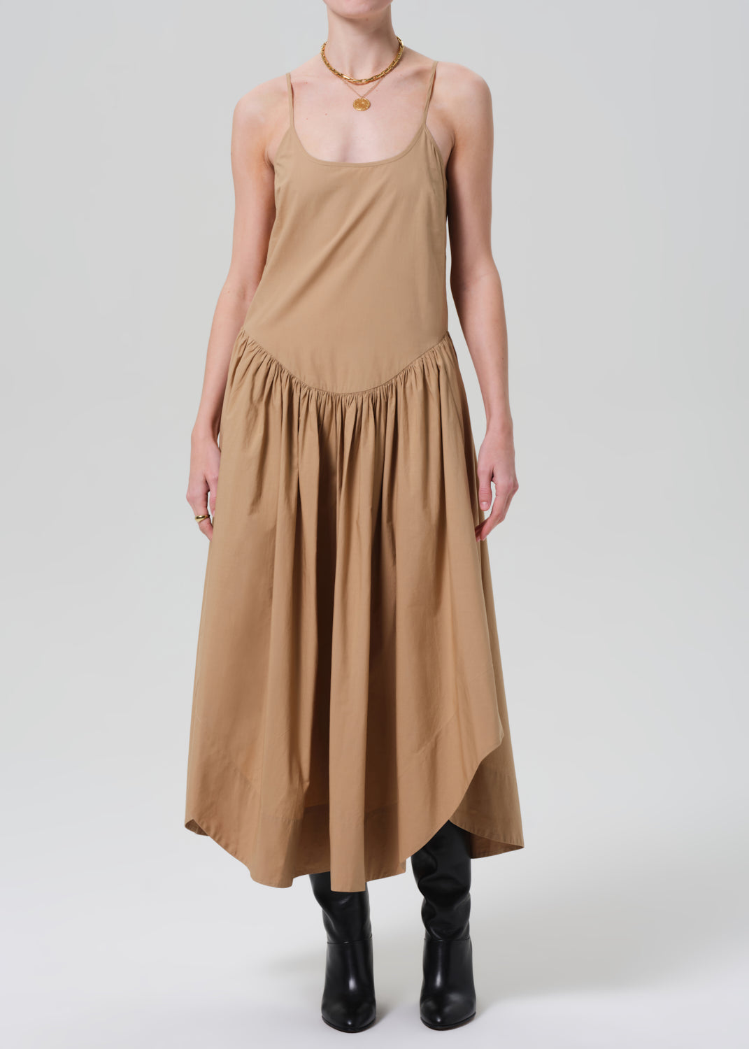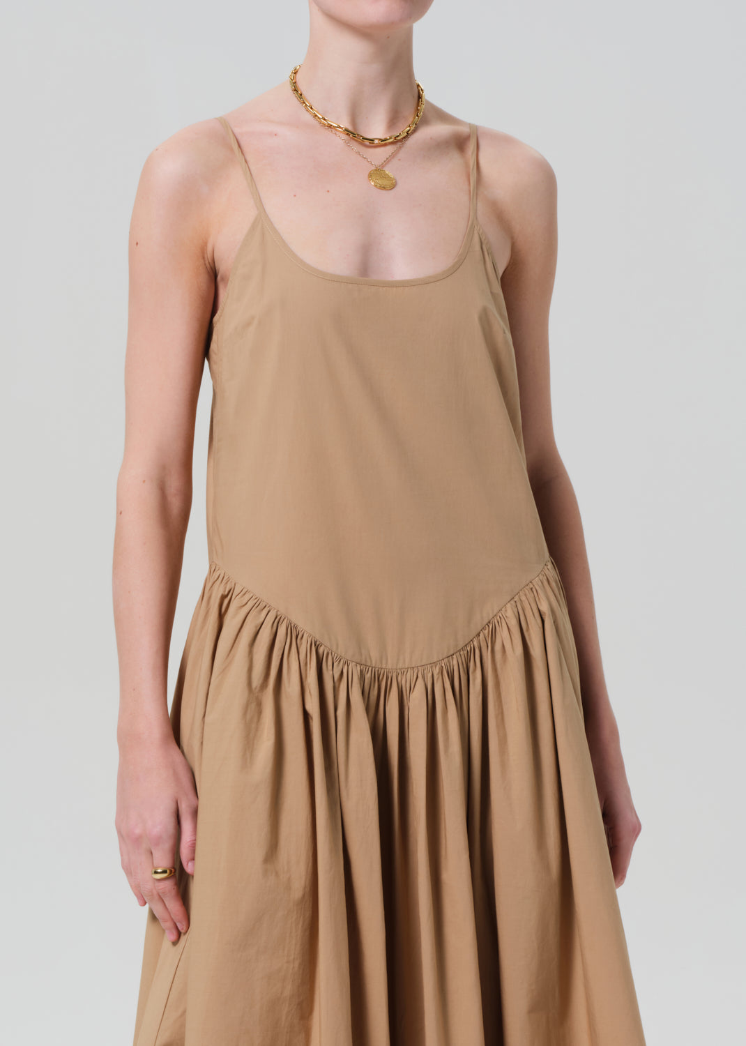 Looks Like: Medium to light brown spaghetti strap long midi dress