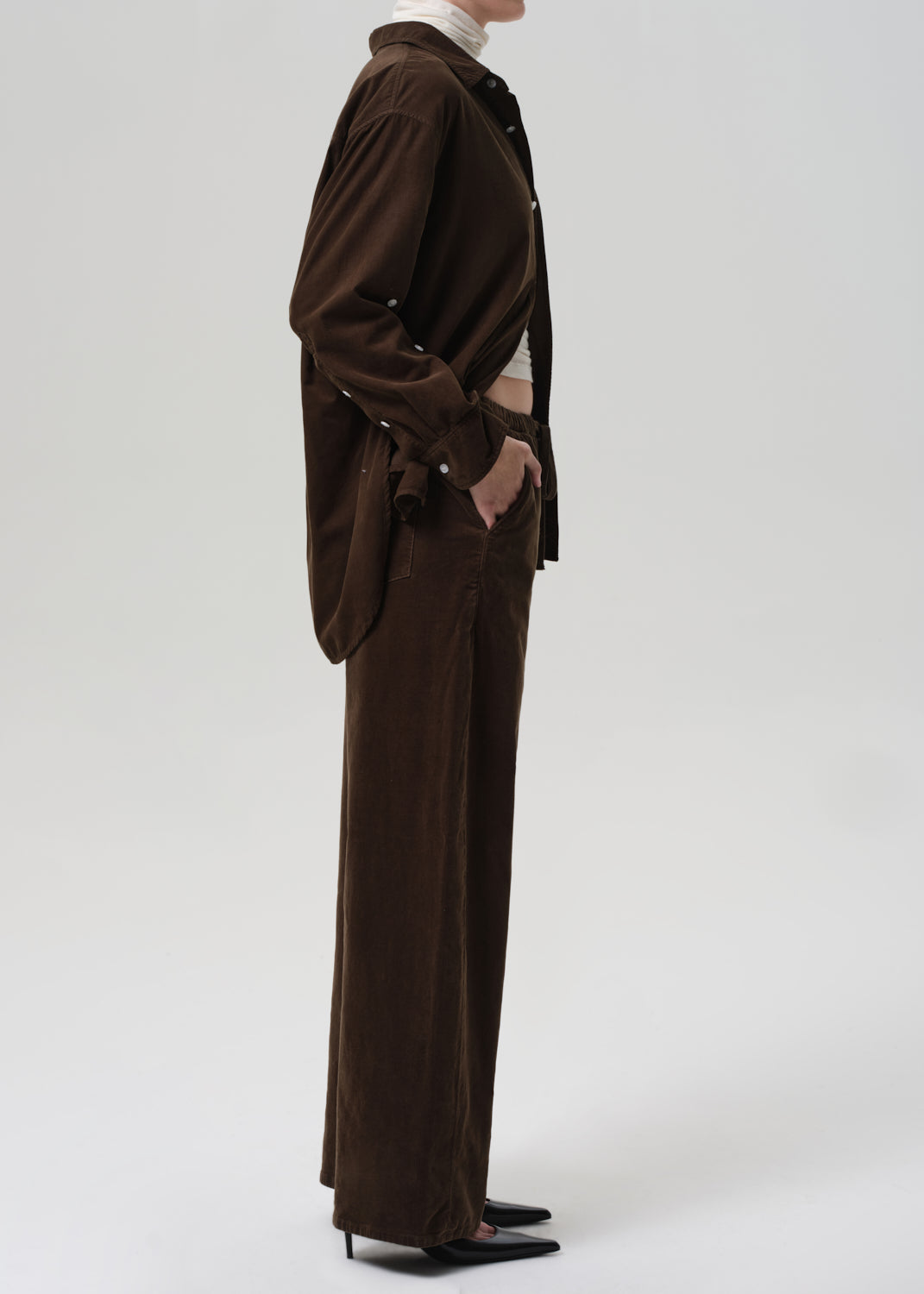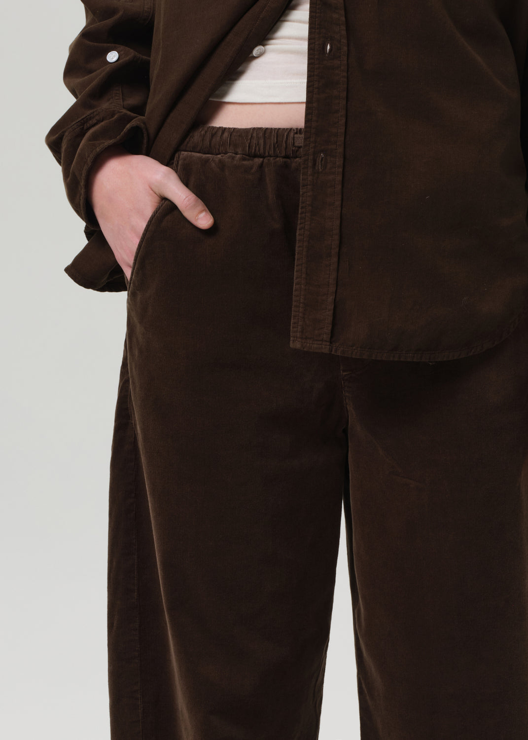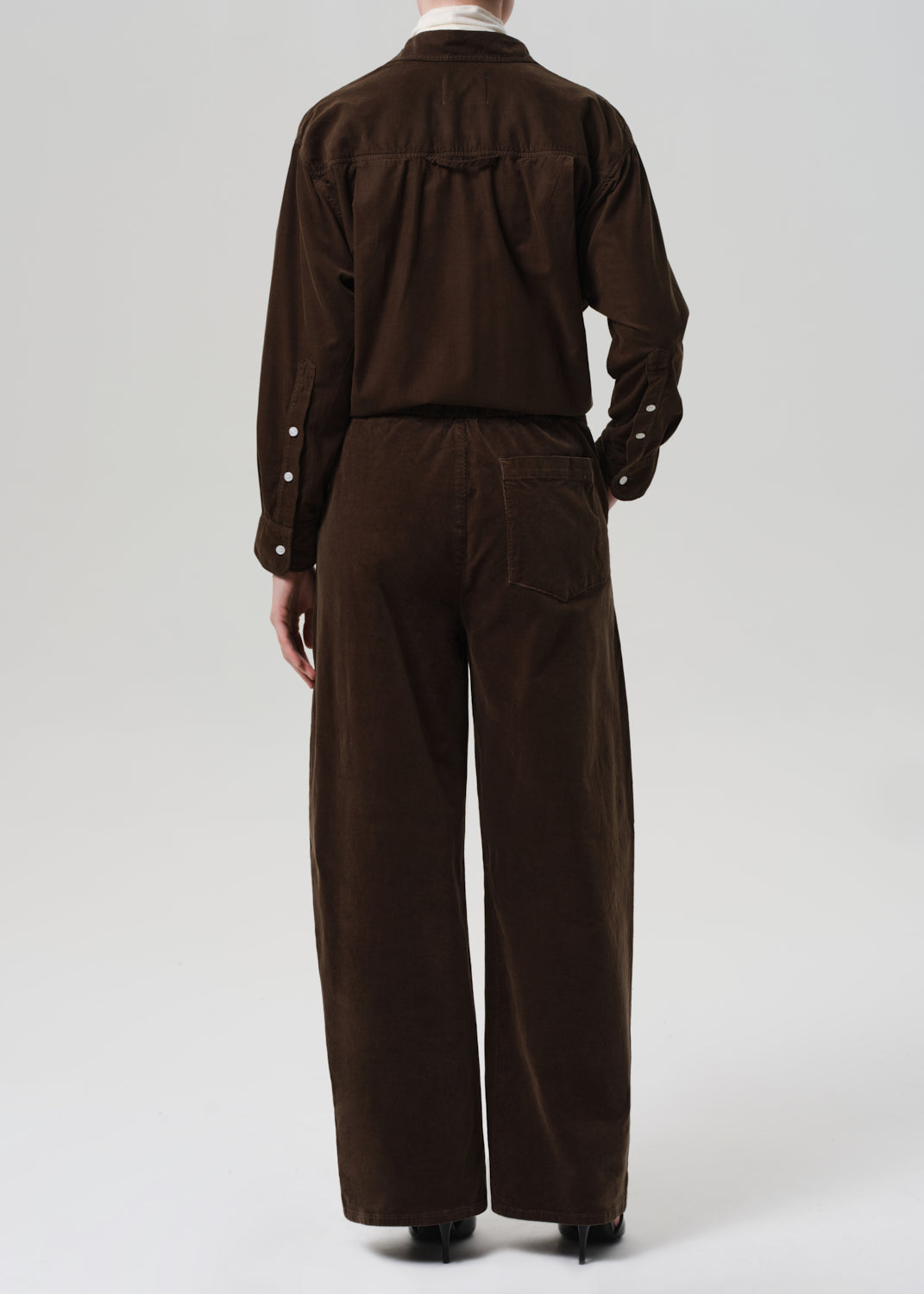 Crafted from soft, stretch baby corduroy with a subtle ribbed texture, the ‘Aurora’ pant is designed for ease with a high-rise drawstring waist and wide leg. The ‘Costes’ shade—a deep, earthy green—adds richness and depth to the relaxed silhouette. Style with tonal knits or a crisp poplin shirt for an elevated everyday look.