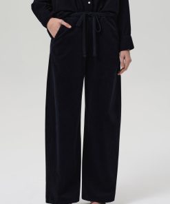 Looks Like: Deep dark navy corduroy pull on pant with drawstring at the waist