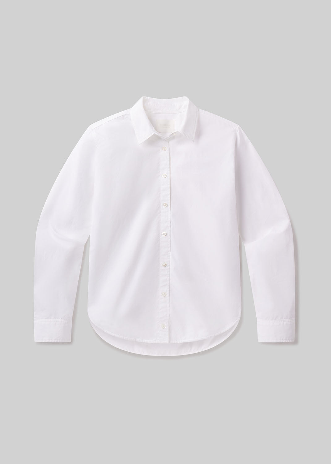 Tailored and timeless, the Avni shirt is cut from ultra-lightweight, breathable cotton with an airy feel. The slim silhouette and crisp button-up design offer clean structure, while the bright white hue adds sharp polish. A foundational piece—perfect on its own or layered under blazers and knits.