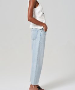 The Ayla Raw Hem Crop, inspired by a reworked vintage silhouette, features a slightly relaxed but flattering top block that transitions into a roomy leg with a raw hem finish. Perfect for warmer days, this cropped denim is crafted from 100% regenerative cotton, offering both comfort and sustainability in a timeless, versatile style. Style it effortlessly with a tucked-in blouse and sandals for a relaxed daytime look, or elevate it with a sleek heel and tailored blazer for an elevated take on casual chic.