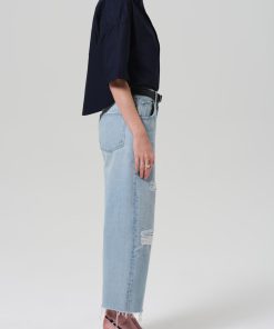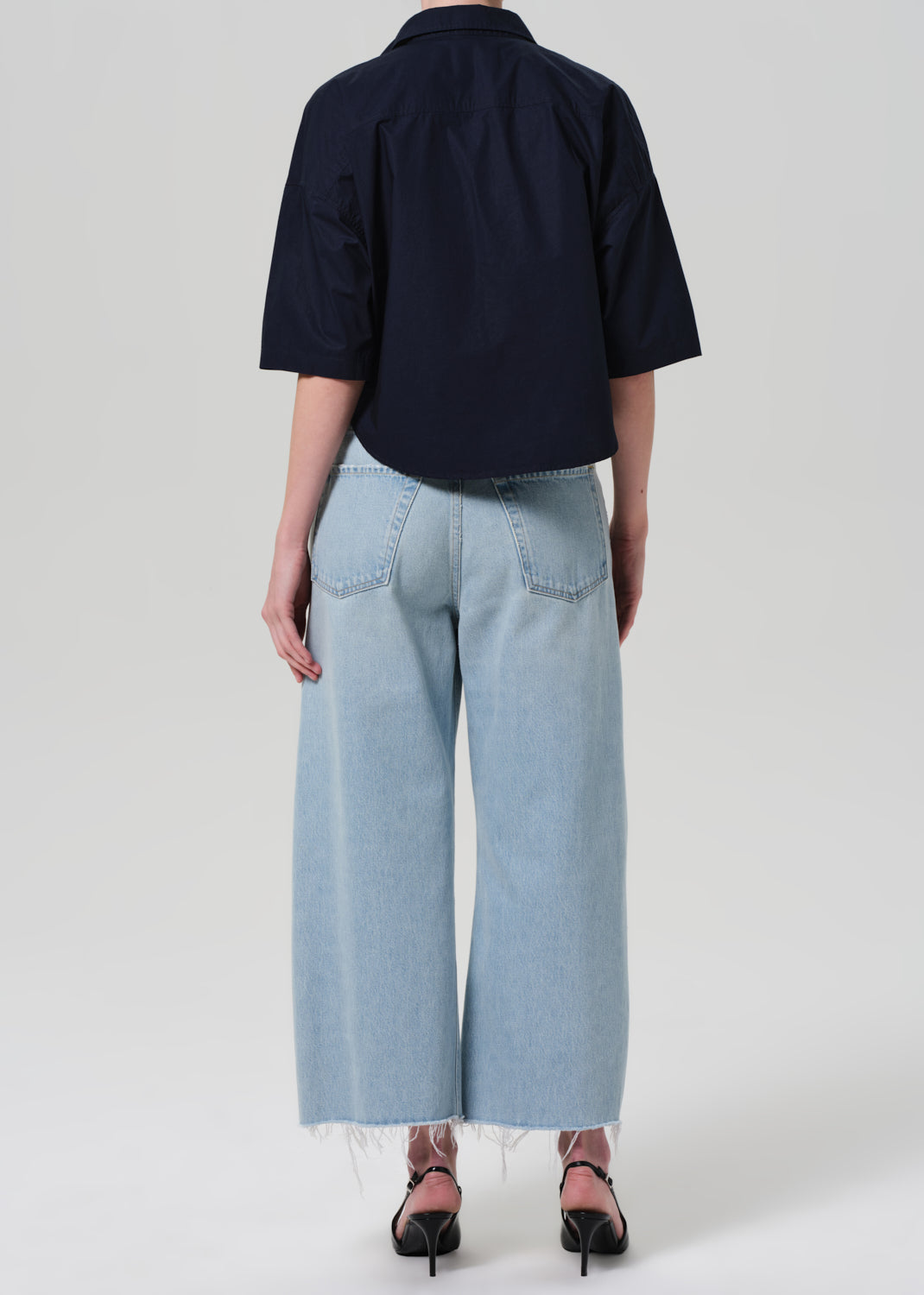 The Ayla Raw Hem Crop, inspired by a reworked vintage silhouette, features a slightly relaxed but flattering top block that transitions into a roomy leg with a raw hem finish. Perfect for warmer days, this cropped denim is crafted from 100% regenerative cotton, offering both comfort and sustainability in a timeless, versatile style. Style it effortlessly with a tucked-in blouse and sandals for a relaxed daytime look, or elevate it with a sleek heel and tailored blazer for an elevated take on casual chic.