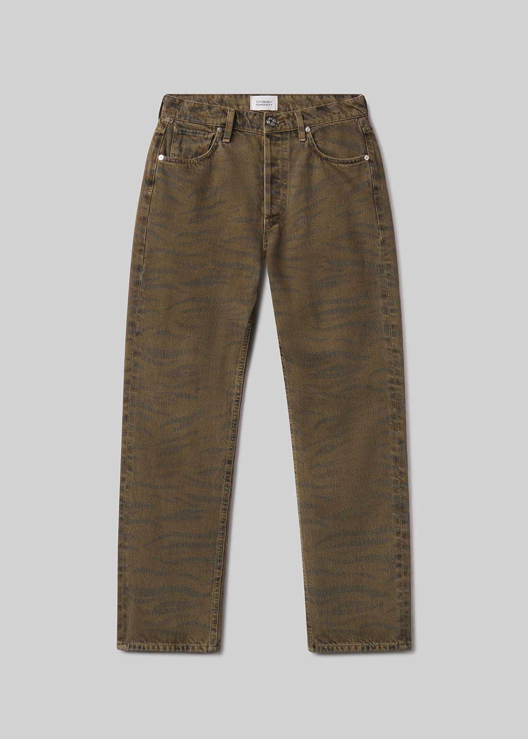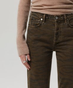 The ‘Blaine’ is a high-rise, vintage-inspired straight leg with an ankle-length inseam and effortless structure. The ‘Medina’ wash is rich brown with zebra print, crafted from non-stretch denim that’s washed down for a lightweight, ultra-soft feel. Style with relaxed tailoring or a slim knit for an elevated, everyday look.