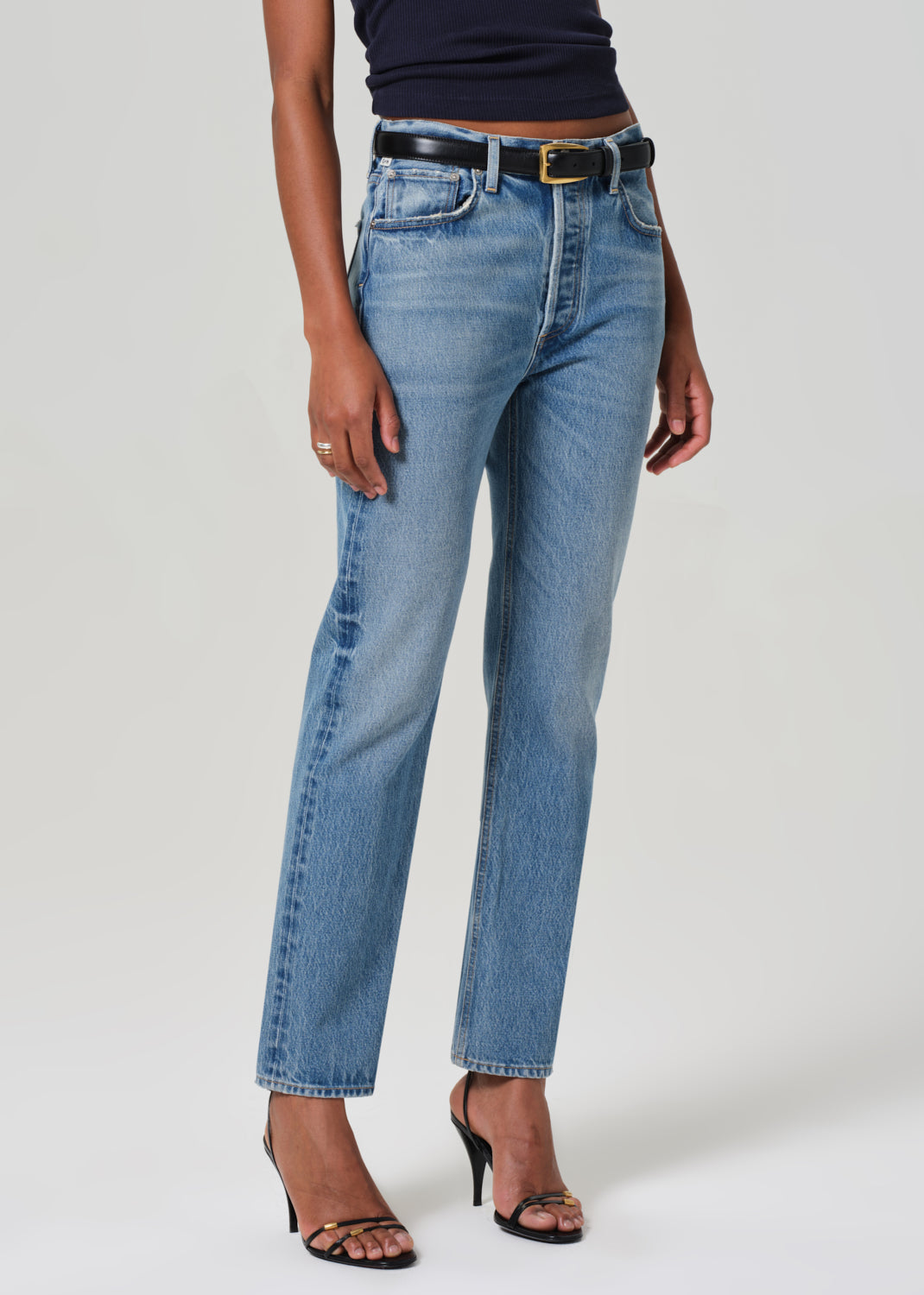 The Blaine jeans are cut for a high-rise, straight-leg profile from 100% regenerative cotton denim that promises to hold its shape over time. Designed for a flattering, structured fit, these jeans offer a versatile foundation for any wardrobe. Pair them with a tailored shirt and heels for a smart yet casual look, or style with a relaxed knit and sneakers for effortless weekend wear.