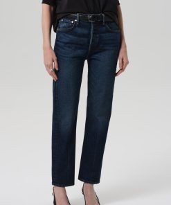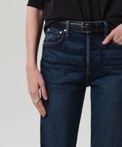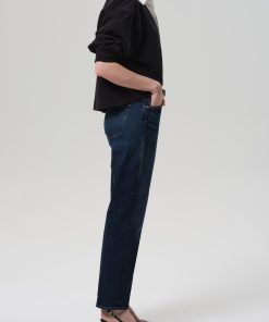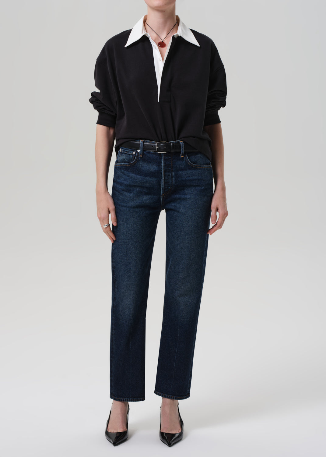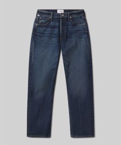 The Blaine is a vintage-inspired straight leg, cut from Japanese comfort stretch denim with a soft, broken-in feel. Designed with a high rise and ankle-grazing length, it offers a structured yet wearable silhouette. The Sutherland wash—a dark indigo with subtle fading and whiskering—adds depth and versatility. Pair with crisp shirting or layered knits for everyday polish.