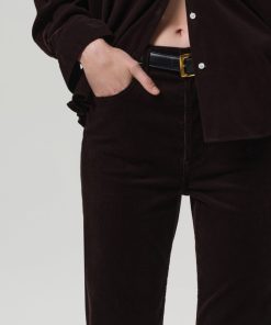 The ‘Blaine’ features a high-rise, vintage-inspired straight leg with an ankle-grazing inseam for a clean, timeless look. This version is crafted from soft, midweight corduroy in a deep brown hue, with slight stretch for added comfort. Style with a relaxed knit or structured jacket for an effortless, everyday uniform.
