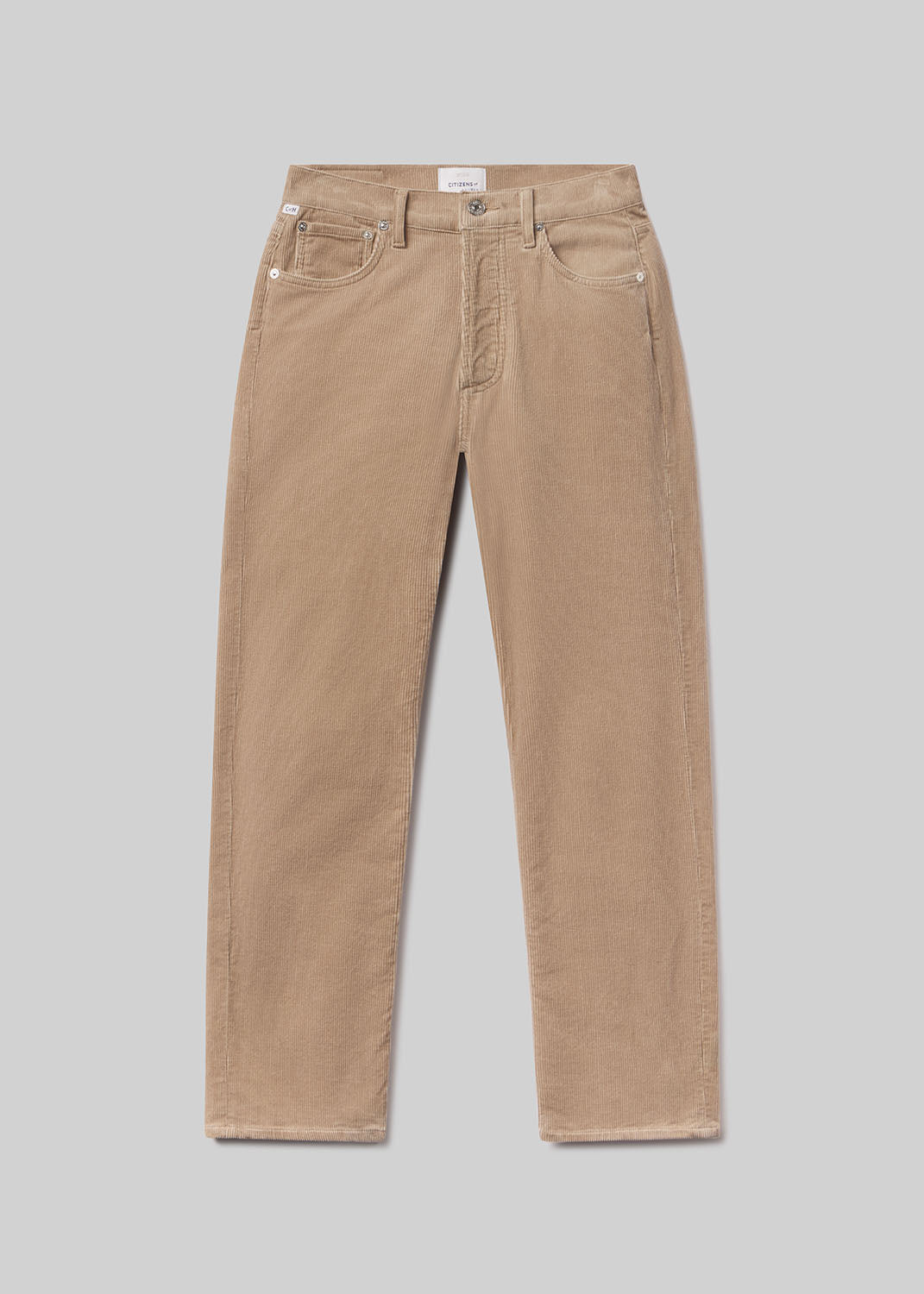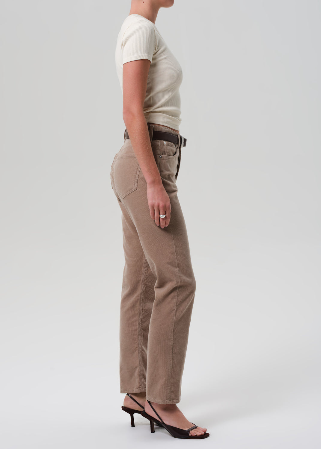 The ‘Blaine’ is a high-rise, vintage-inspired straight leg with an ankle-length inseam and clean finish. This version is crafted from soft, midweight corduroy in a light taupe hue with slight stretch for added comfort. Pair with tonal layers or a crisp button-down for an effortless, neutral look.