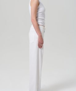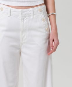 Looks Like: Clean soft white denim trouser with side button pocket detailing