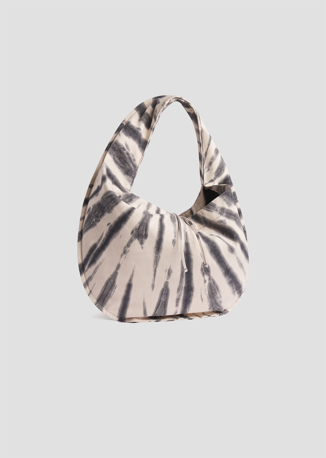 Looks Like: Light peach and charcoal spiral tie dye boho single strap shoulder bag