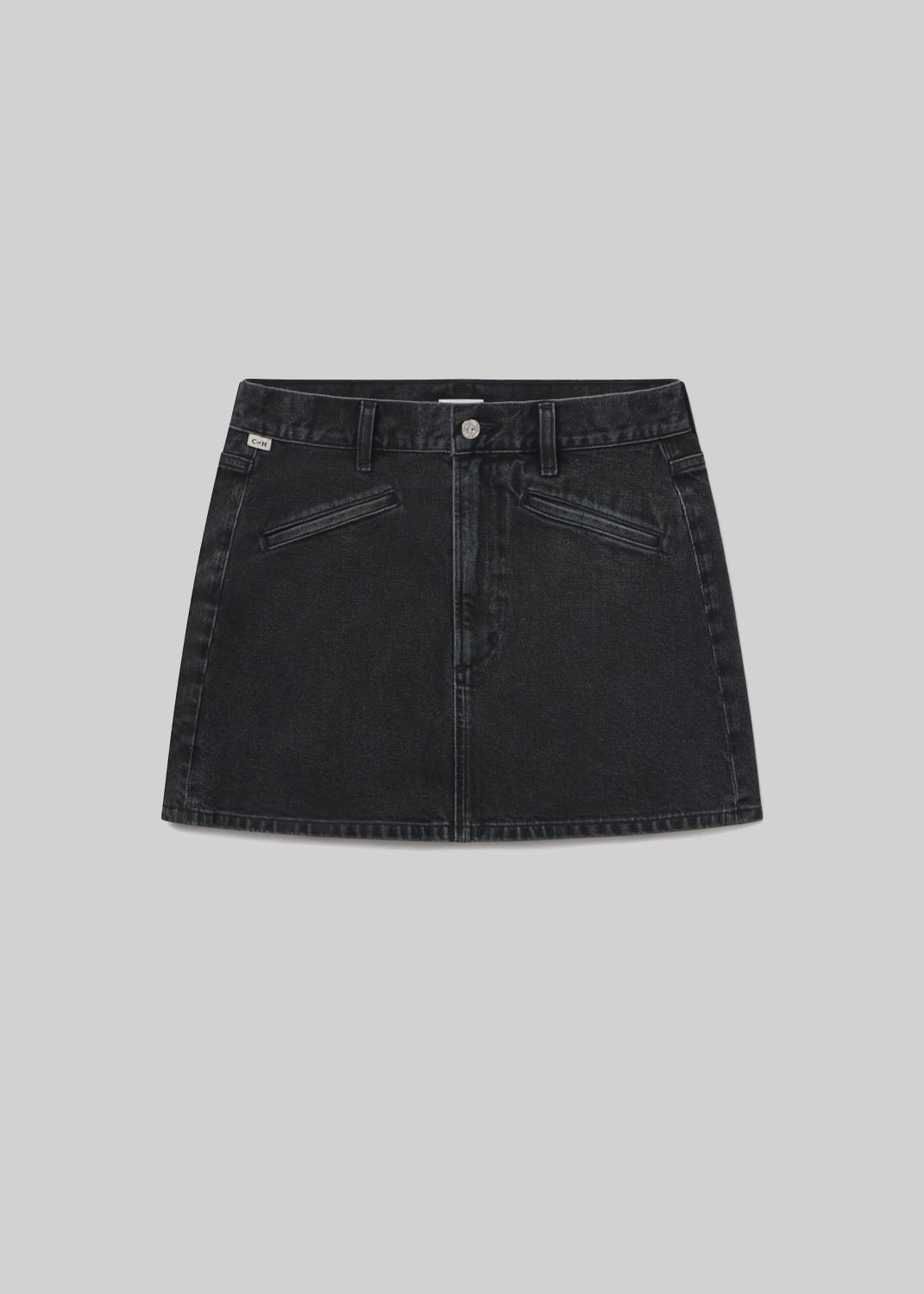 Looks Like: Washed black skirt with clean hem and trouser pocket detailing