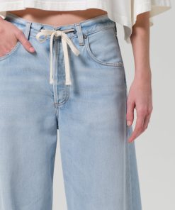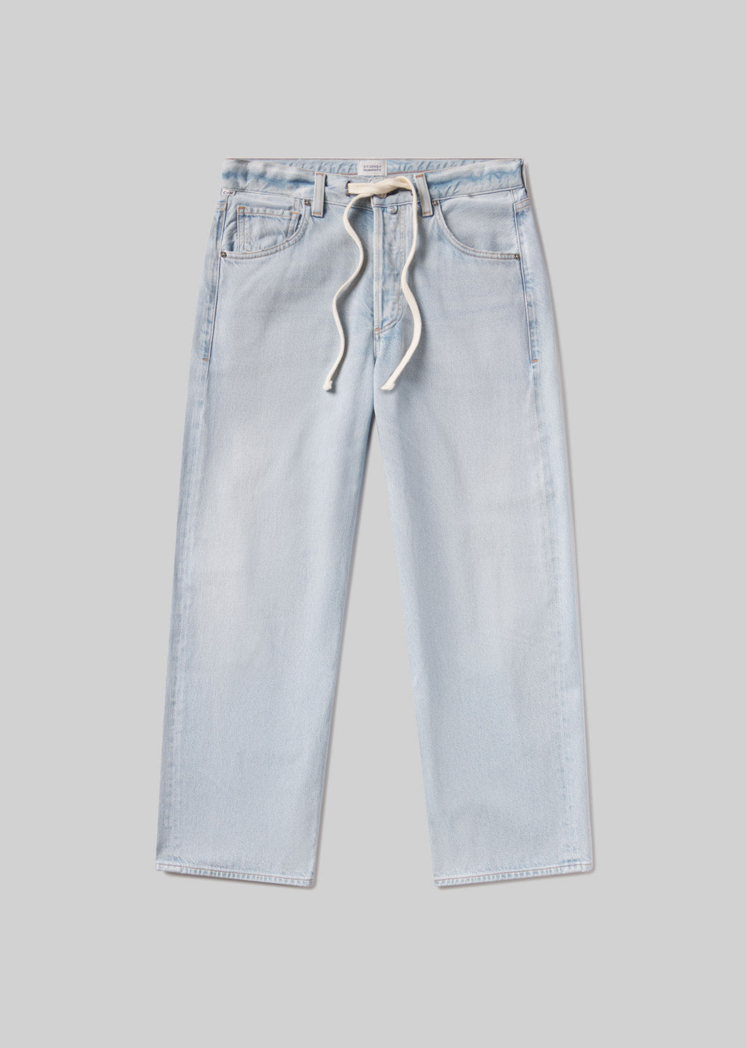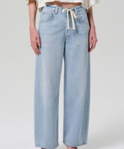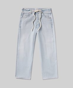 Looks Like: Light indigo denim with soft fading,whiskering and drawstring detail