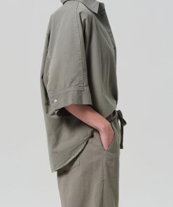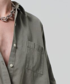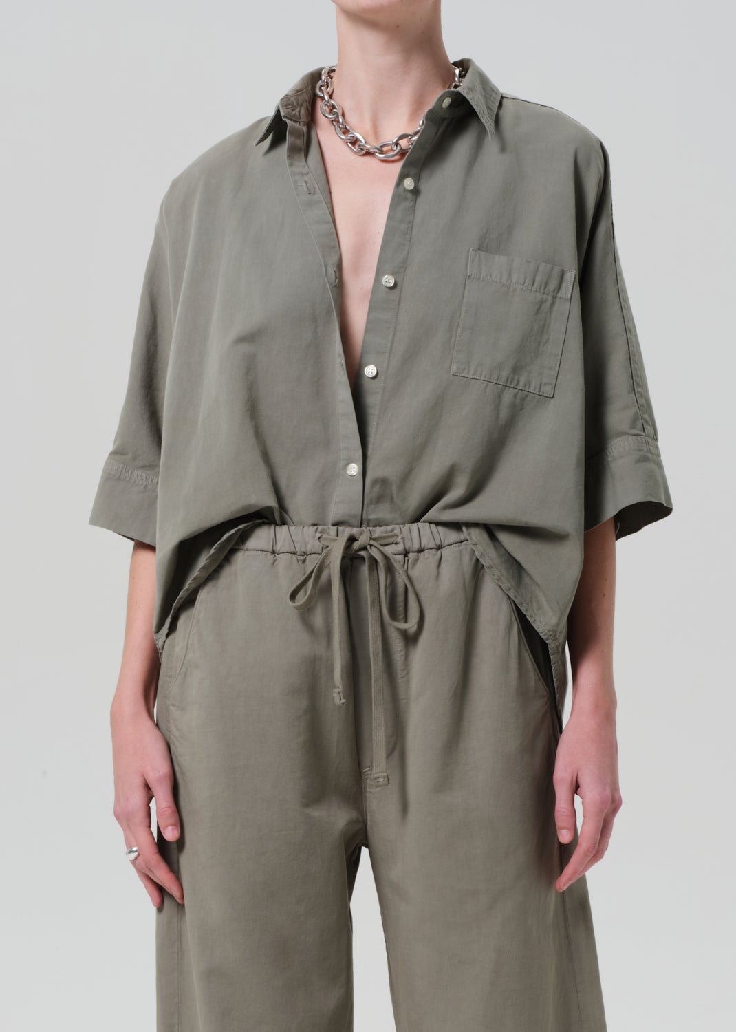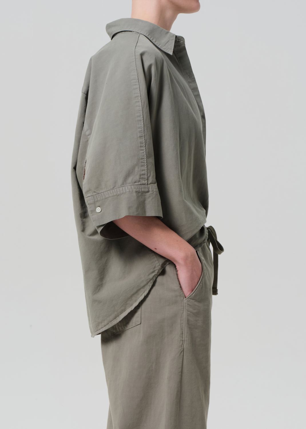 The Claire Origami Shirt has a loose fit, oversized sleeves and a classic pointed collar.