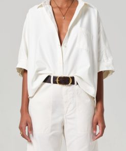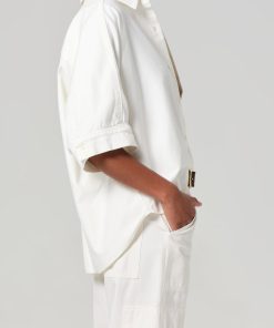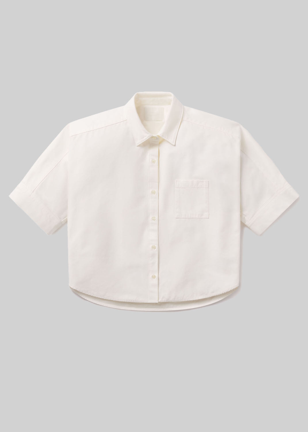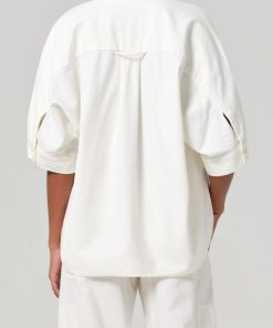 The Claire Origami Shirt has a loose fit, oversized sleeves and a classic pointed collar.