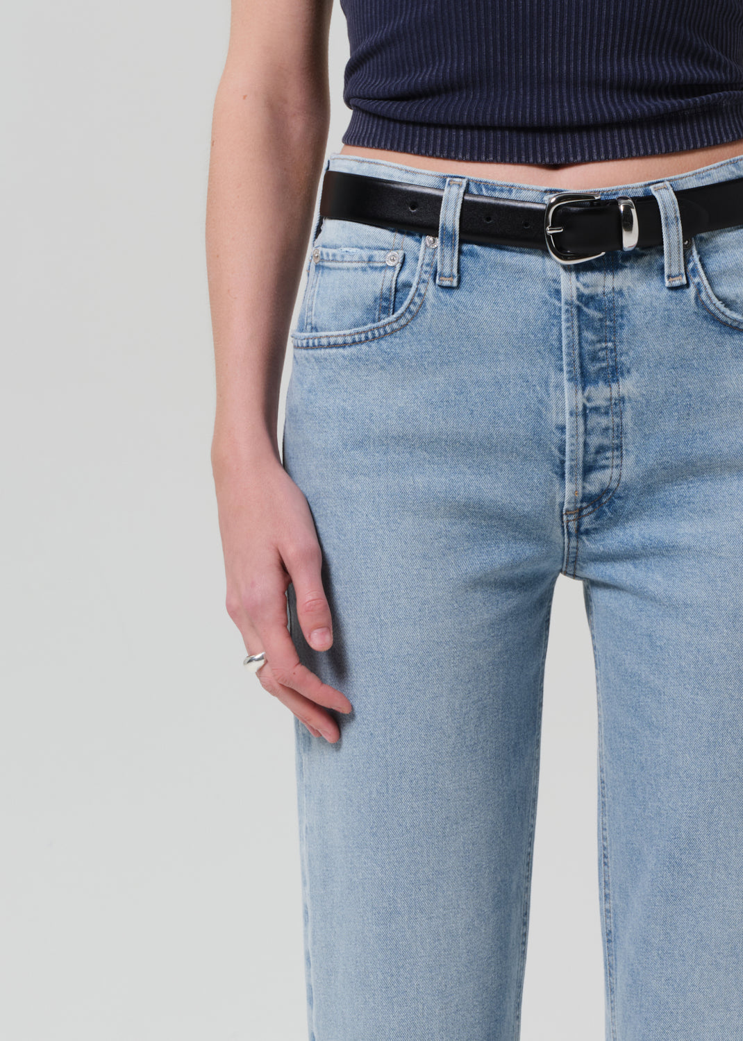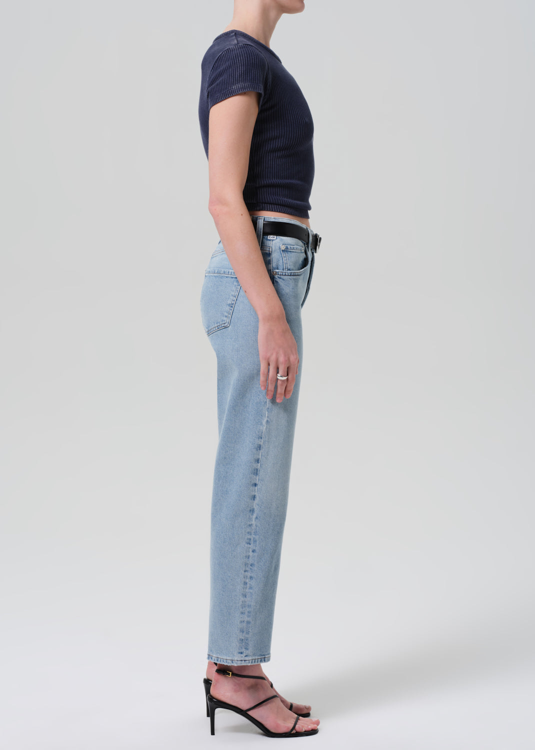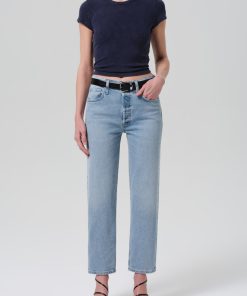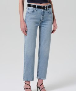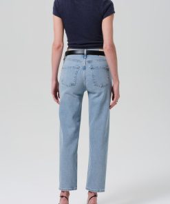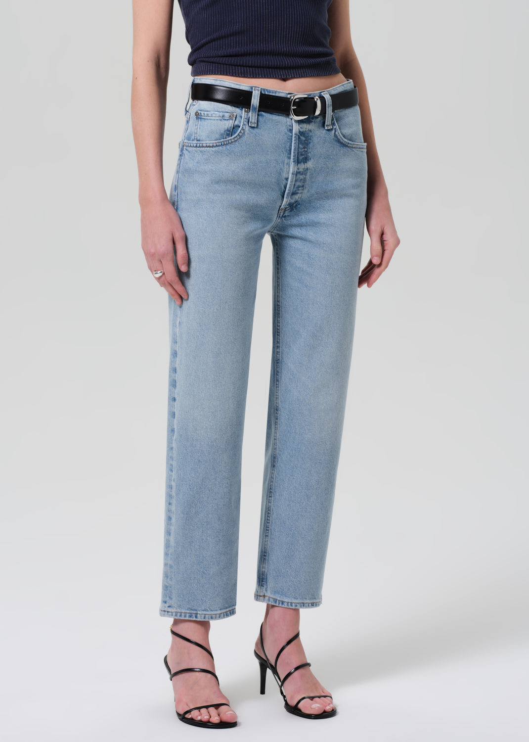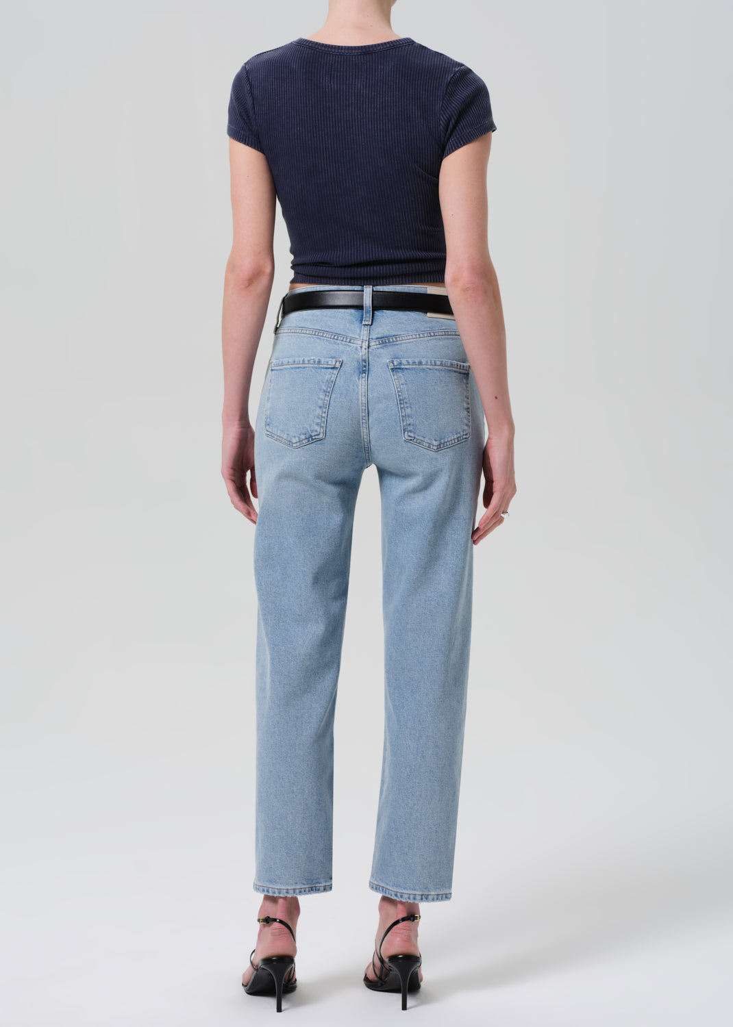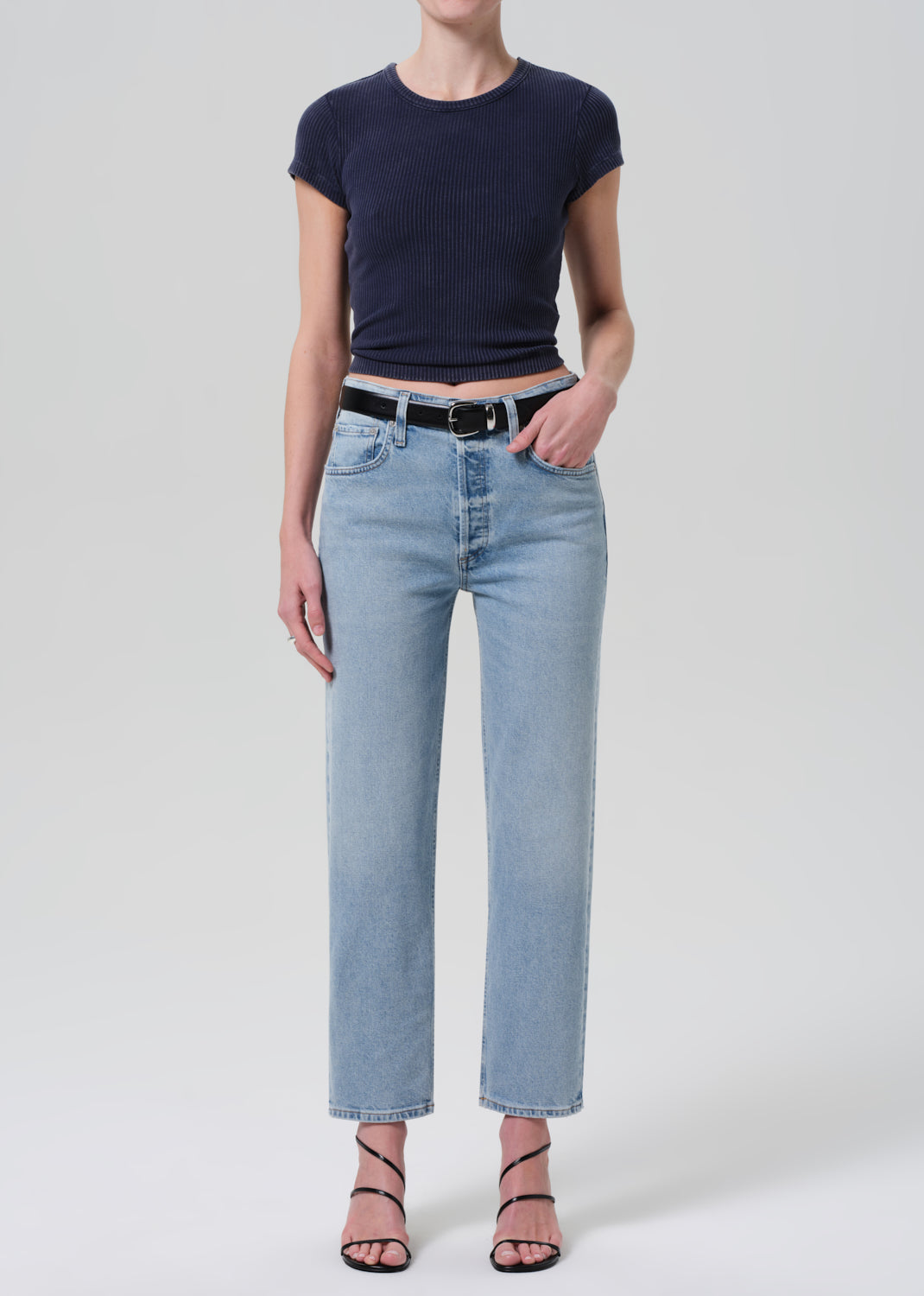 A stretch essential. The Delfina jean features a high-rise and straight fit, designed to be ultra-flattering. Ankle-length inseam.