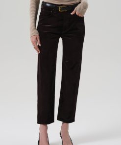 The ‘Delfina’ is a high-rise straight leg crafted from ultra-soft stretch velvet with a smooth, polished finish. Designed for a flattering, easy fit, it blends everyday comfort with elevated texture. The Espresso hue—a rich, dark brown—offers a refined alternative to black, ideal styled with tonal knits or crisp shirting.