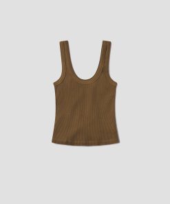 Looks Like: Medium to dark bronze scoop neck sleeveless tank