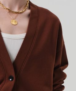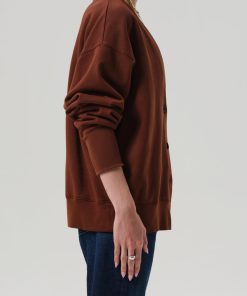 Looks Like: Oversized medium brown with red undertones long sleeve cardigan
