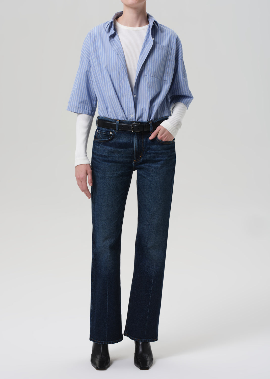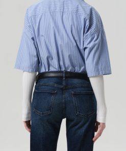 The ‘Frances’ is a fresh take on the classic button-up, crafted from ultra-lightweight cotton poplin with an airy, breathable feel. Designed with a cropped silhouette and subtle cape-inspired back detail, it blends structure with softness. Style it with high-rise denim or tailored shorts for a modern, effortless look.