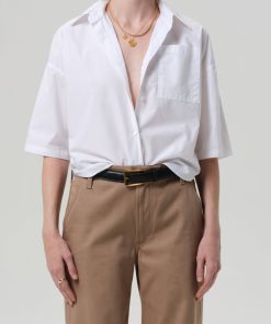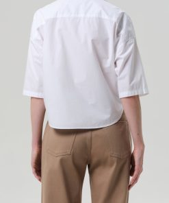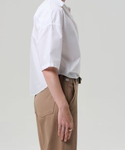 The Francis Cropped Cape Button-Up offers a fresh take on the classic button-down. Crafted from 100% cotton, it features expertly placed seam details for a close, accentuating fit. The cropped silhouette adds a modern twist, making it the perfect piece to pair with high-waisted denim or a sleek skirt for an effortlessly elevated look.