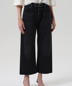 A vintage-inspired silhouette with everyday ease, the Gaucho is a high-rise, wide-leg jean with a cropped length and relaxed fit through the hip. Crafted from rigid regenerative cotton denim with a soft, broken-in hand, it’s designed to hold shape while offering all-day comfort. The Raine wash—a washed black with soft fading and marbling—adds a lived-in, versatile finish. Pair with crisp shirting or slim knits for contrast.