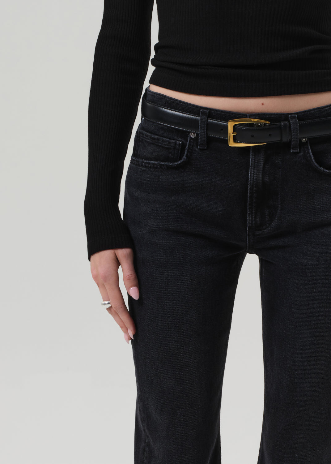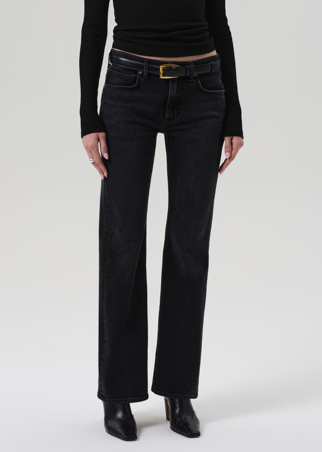 The Genova is a low-rise bootcut silhouette designed to elongate and flatter. Crafted from comfort stretch archive denim made with regenerative cotton, it features a soft, broken-in hand with just the right amount of give. The Willow wash—a dark black with subtle whiskering—offers a clean, versatile finish. The full-length leg pairs effortlessly with any kind of shoe—from boots to sneakers to heels.