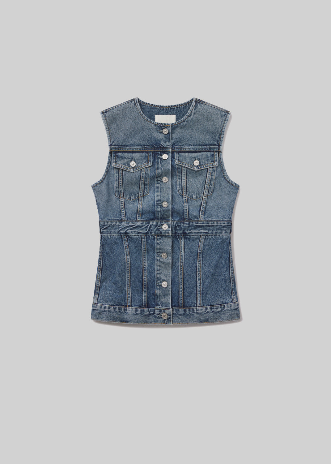 The Idalene vest is cut with a fitted top, accentuated waist, and button closures from top to bottom. Carefully faded and whiskered to give create a vintage look and feel.