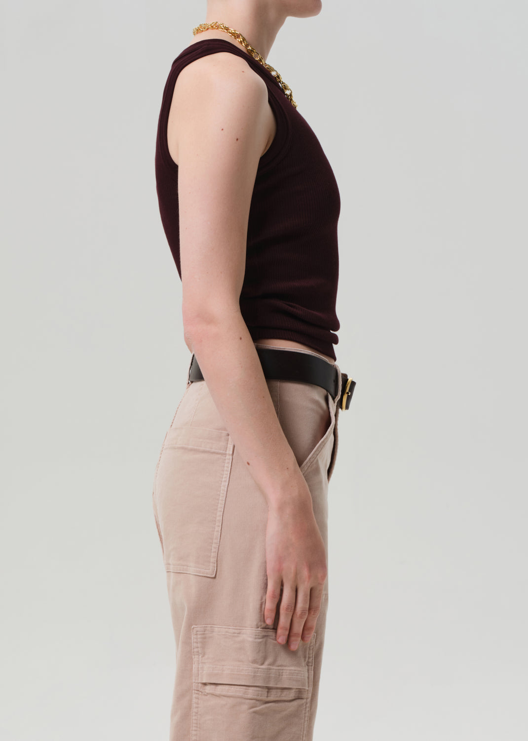 The Isabel Tank is a modern essential, cut in ultra-soft, supportive ribbed cotton with a close, flattering fit. Designed with a high neckline and clean finish, it’s ideal worn solo or layered under structured pieces. A polished base for elevated everyday styling.