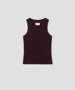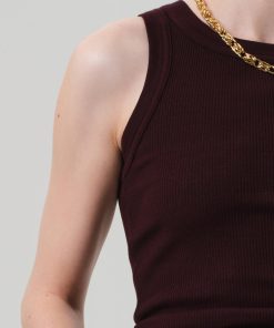 Looks Like: Deep dark purple with brown undertones high neck sleeveless tank